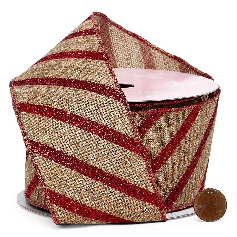 ริบบิ้นผ้าไหมธรรมชาติสีแดงลายกลิตเตอร์เปปเปอร์มินต์สำหรับตกแต่งคริสต์มาส