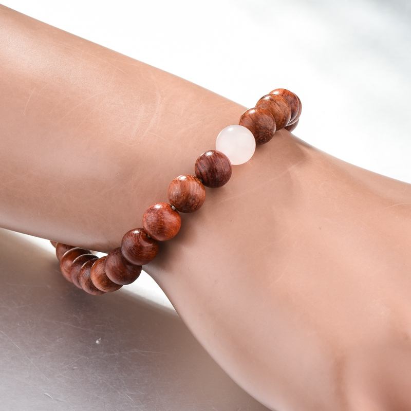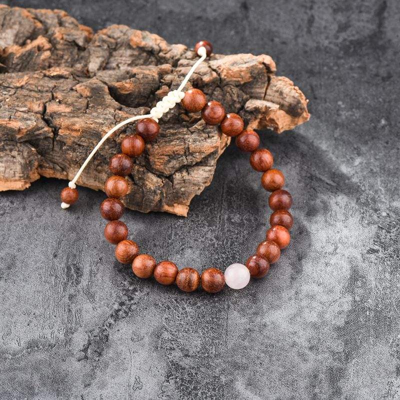 สร้อยข้อมือไม้ลูกปัดปรับได้พร้อมหินควอตซ์สีกุหลาบสร้อยข้อมือลูกปัดไม้ธรรมชาติสร้อยข้อมือทอแฟชั่น