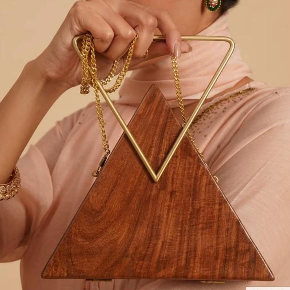 กระเป๋าคลัทช์ไม้ธรรมชาติพร้อมสายหนังและโซ่ดีไซน์แฟชั่นเป็นมิตรกับสิ่งแวดล้อมงานทำมือทนทานใช้ทุกวันตอนเย็น