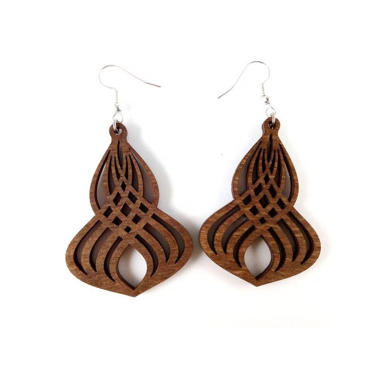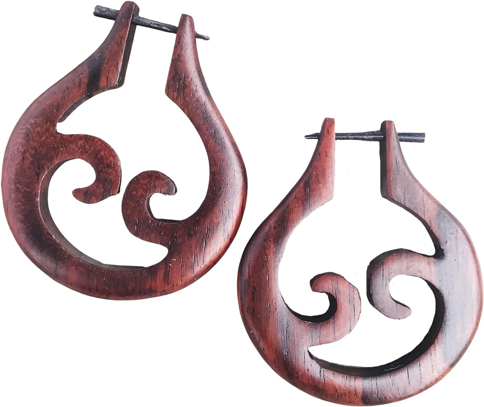 ต่างหูไม้ธรรมชาติโบราณวินเทจเครื่องประดับผู้หญิงต่างหูเรขาคณิต