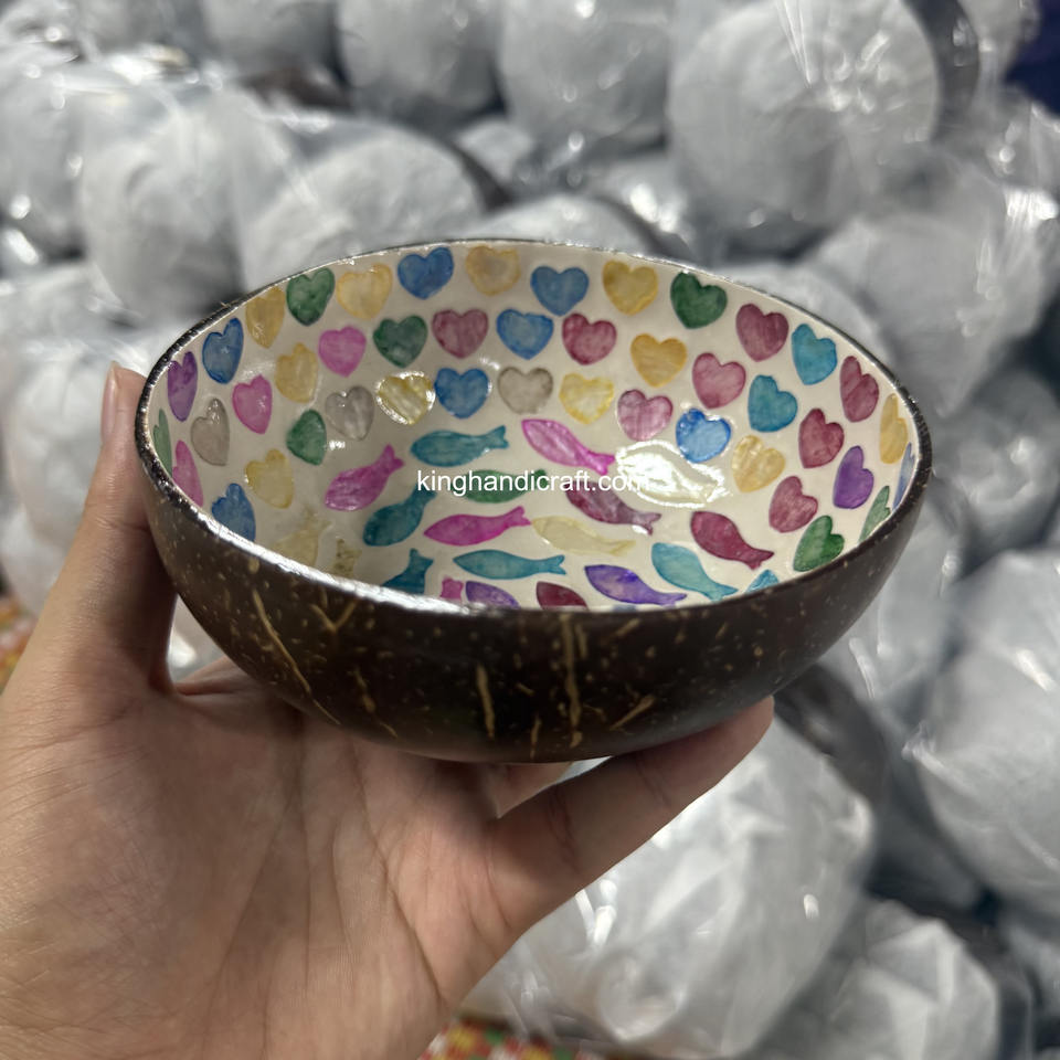 ภายในเคลือบชามกะลามะพร้าวงานฝีมือทำจากไม้ธรรมชาติใช้ซ้ำได้จานชามเป็นมิตรต่อสิ่งแวดล้อมน้ำหนักเบาทนทานสำหรับสลัด