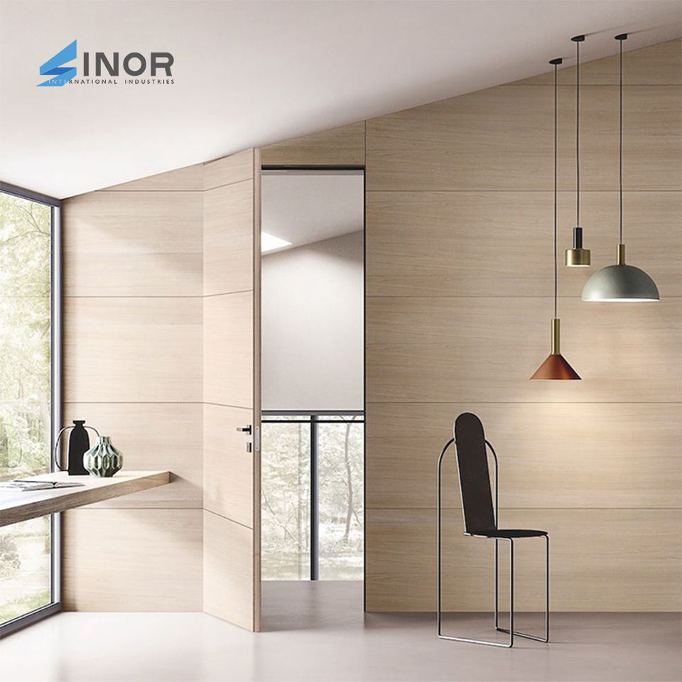 ประตูไม้ธรรมชาติแบบซ่อนขอบ เทคโนโลยีป้องกันความชื้น แกนแข็ง ลดเสียงรบกวน สำหรับการปรับปรุงบ้าน