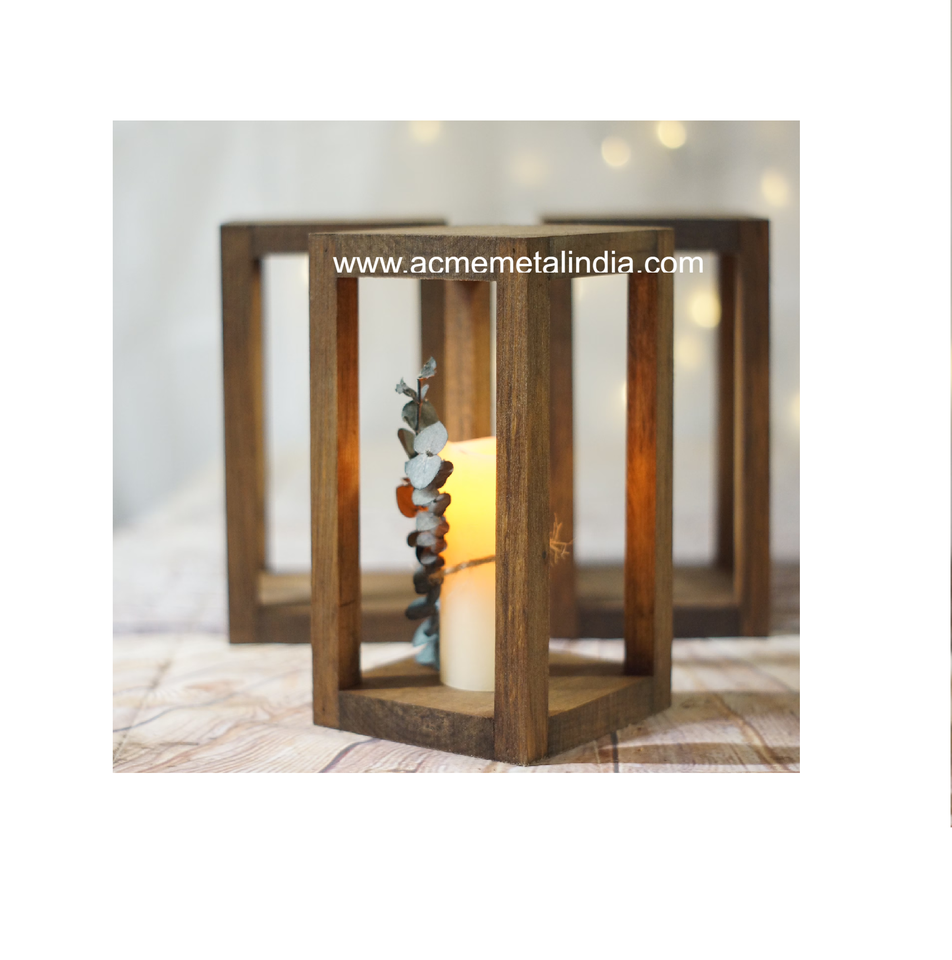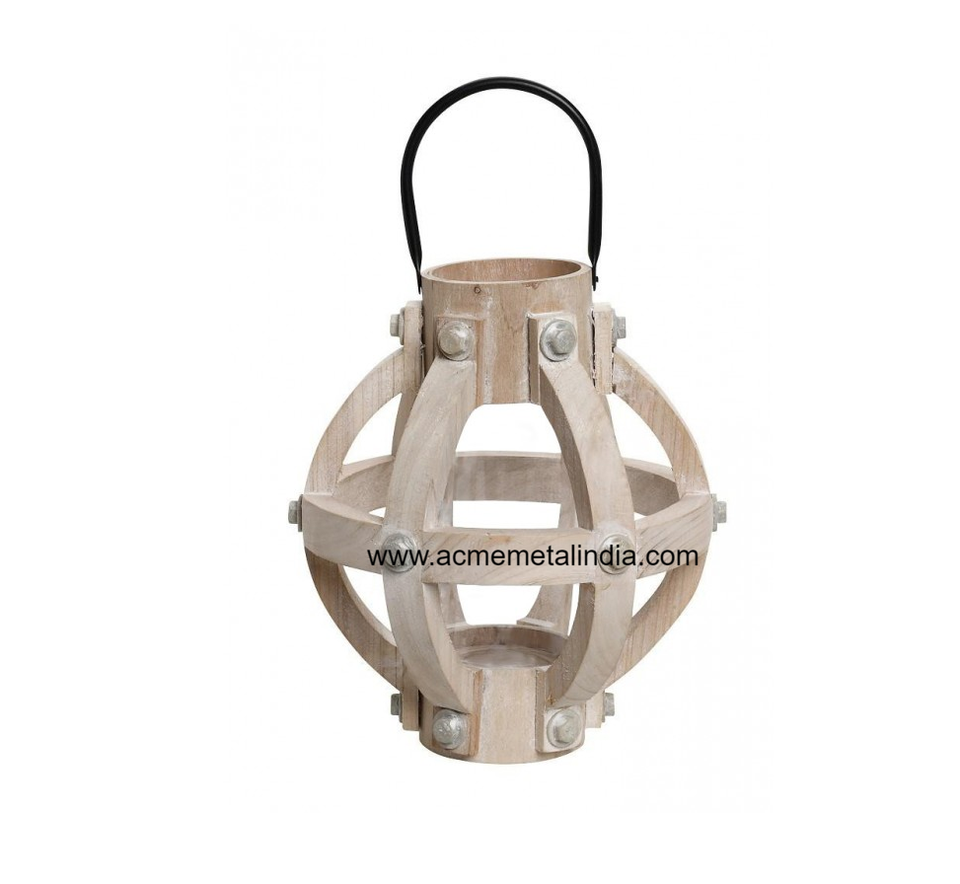 โคมไฟไม้ธรรมชาติพร้อมที่จับเหล็กเหมาะสำหรับแขวนในสวนและตกแต่งเทศกาลคริสต์มาส