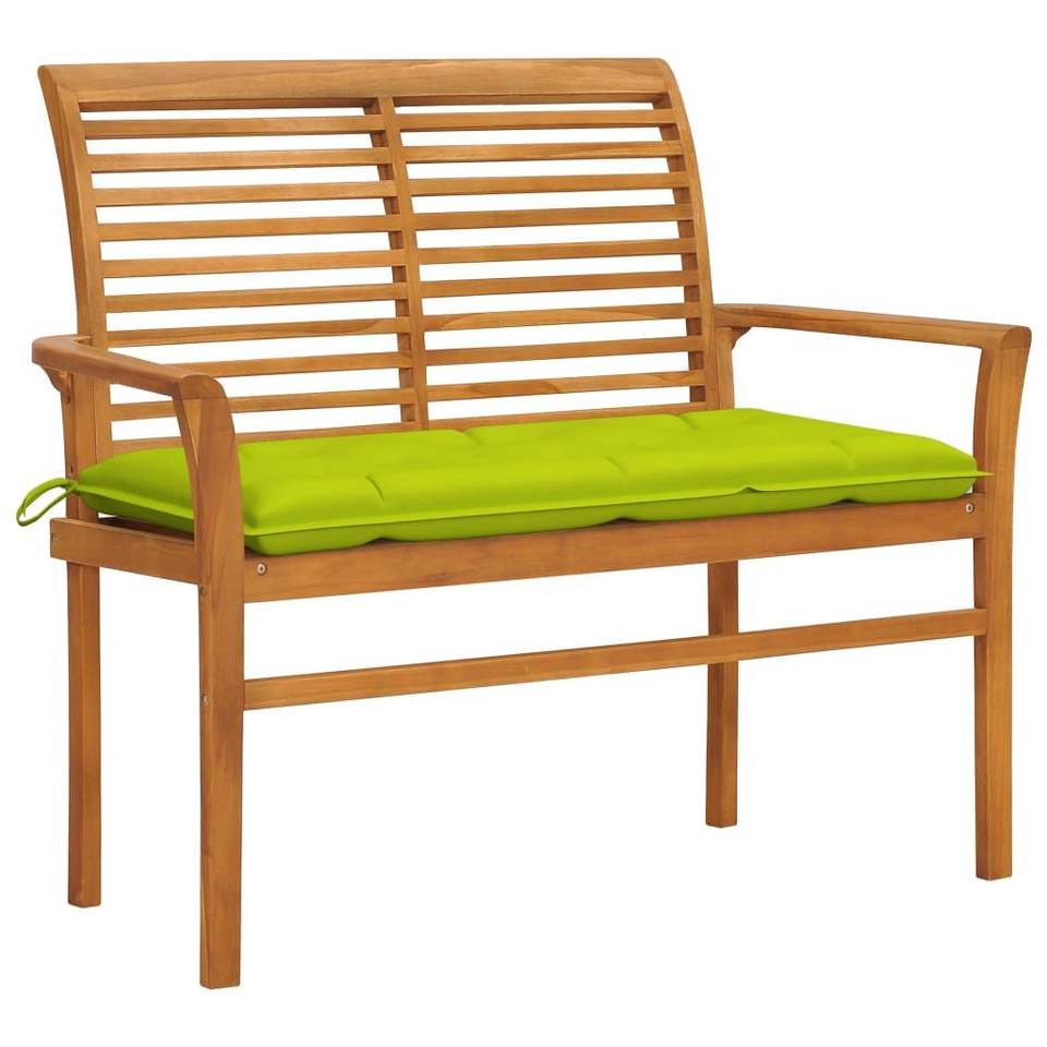 ม้านั่งไม้ธรรมชาติสำหรับลานบ้าน พร้อมเบาะสีเขียวสดใส ทำจากไม้สักเนื้อแข็ง