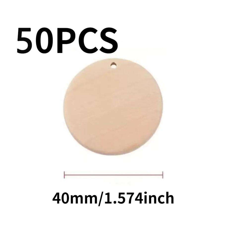 จี้ไม้ทรงกลมธรรมชาติขนาด 40 มม. มีรูสำหรับทำเครื่องประดับ DIY ต่างหู จี้ห้อย งานฝีมือ วัสดุจากจีน