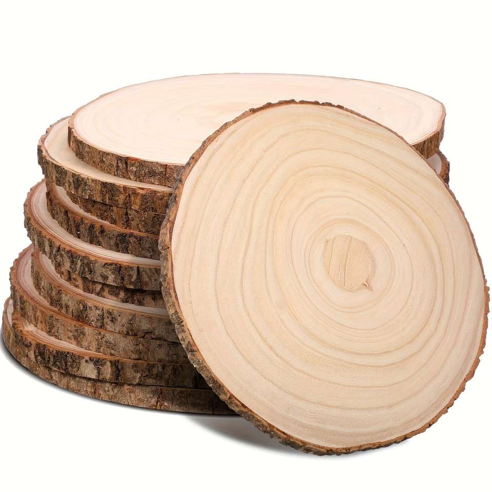 แผ่นไม้ธรรมชาติ 5 ชิ้น รูปทรงกลม ขอบเปลือกไม้ธรรมชาติ สำหรับงาน DIY งานฝีมือ ของตกแต่งงานแต่งงานสไตล์เรียบง่าย ของตกแต่งโต๊ะกลาง ไม้ซุง จีน