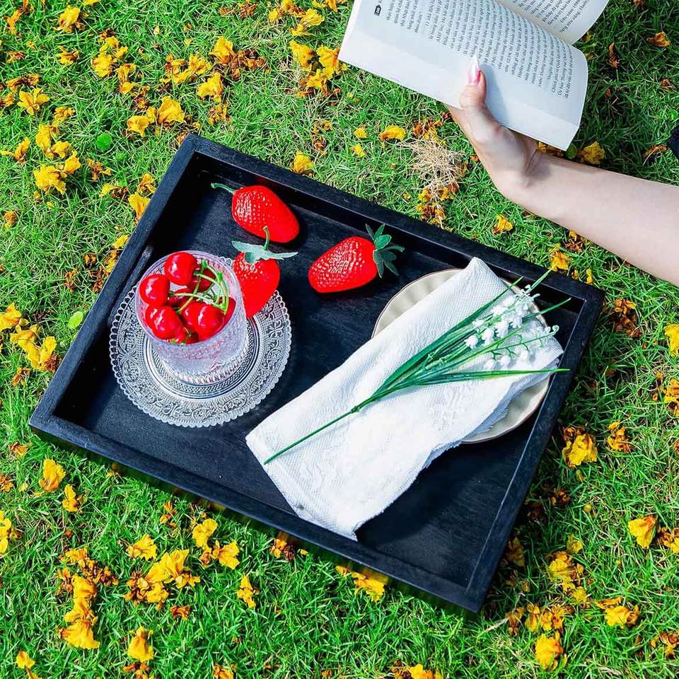 ชื่อผลิตภัณฑ์:ถาดเสิร์ฟไม้พร้อมคัตเอาท์ที่จับชุดละ2ชิ้น