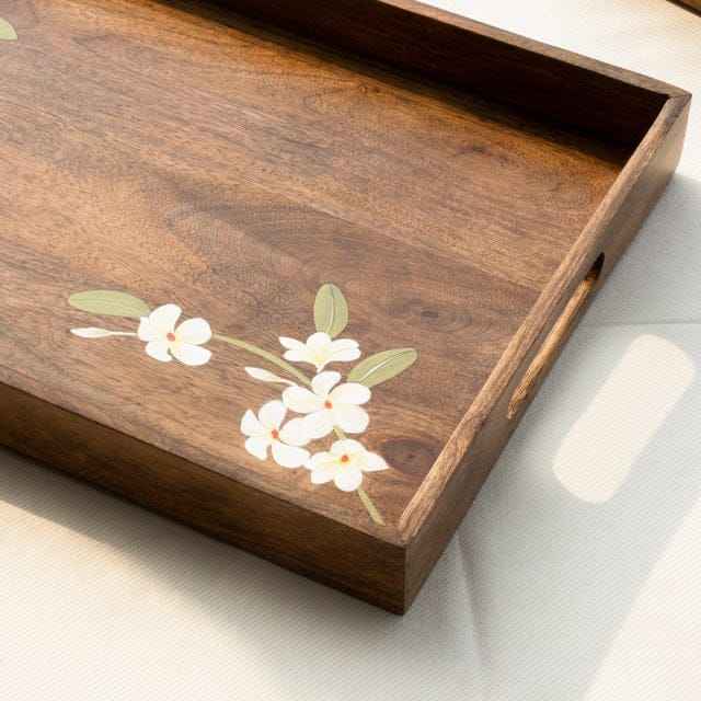 ถาดไม้ธรรมชาติถาดไม้ตกแต่งสี่เหลี่ยมสำหรับปาร์ตี้อาหารเช้าถาดไม้หรูหราสำหรับโซฟาอาหารว่างห้องครัวรับประทานอาหาร