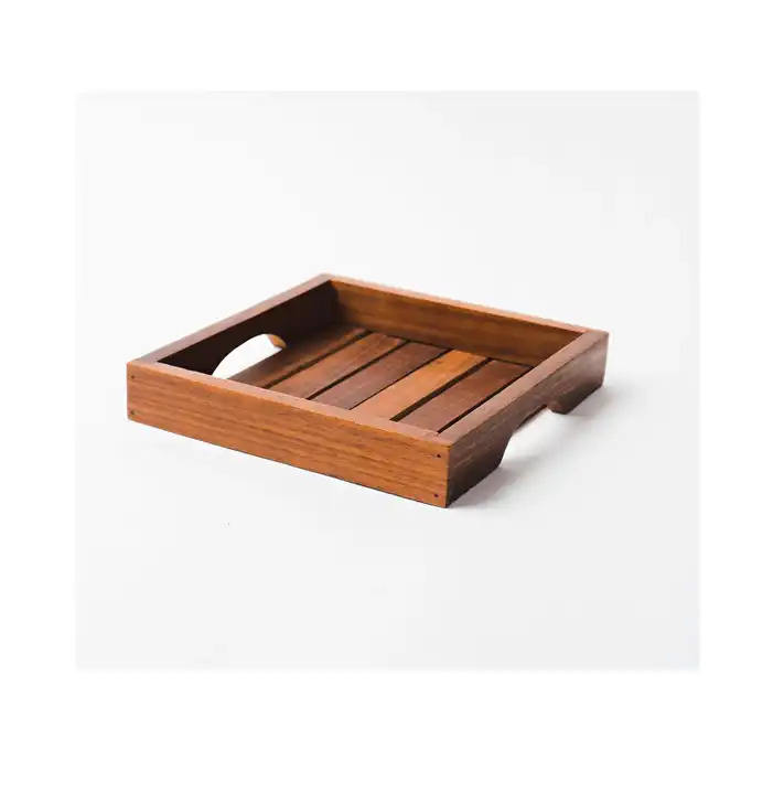 ถาดเสิร์ฟไม้ธรรมชาติสำหรับบ้านและโรงแรมถาดเสิร์ฟอาหารและของว่างทำมือสีน้ำตาล