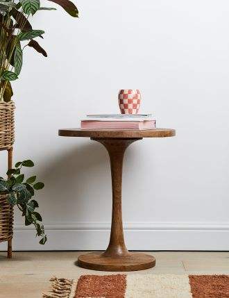 โต๊ะข้างไม้ธรรมชาติพร้อมโทนสีไม้อบอุ่น ช่วยเพิ่มความสงบและสร้างบรรยากาศอบอุ่นภายในบ้าน