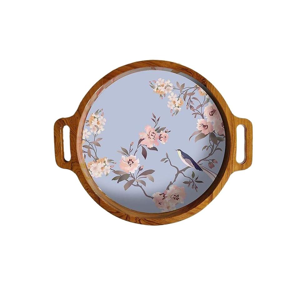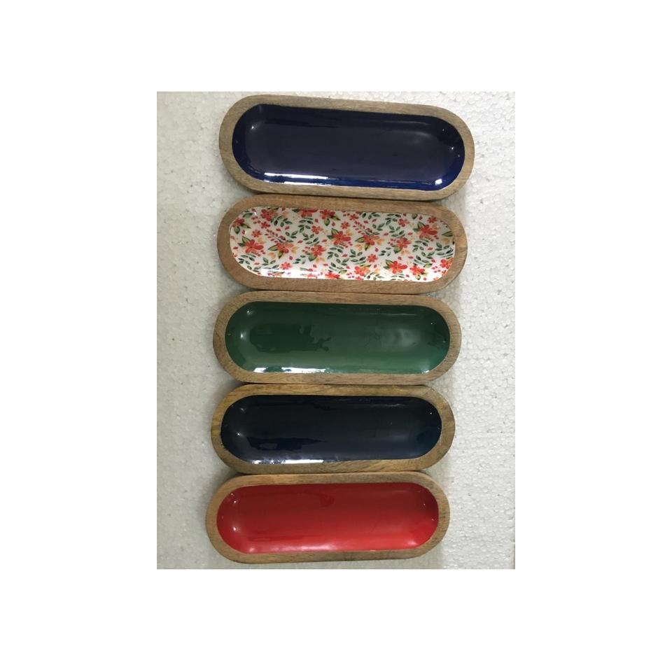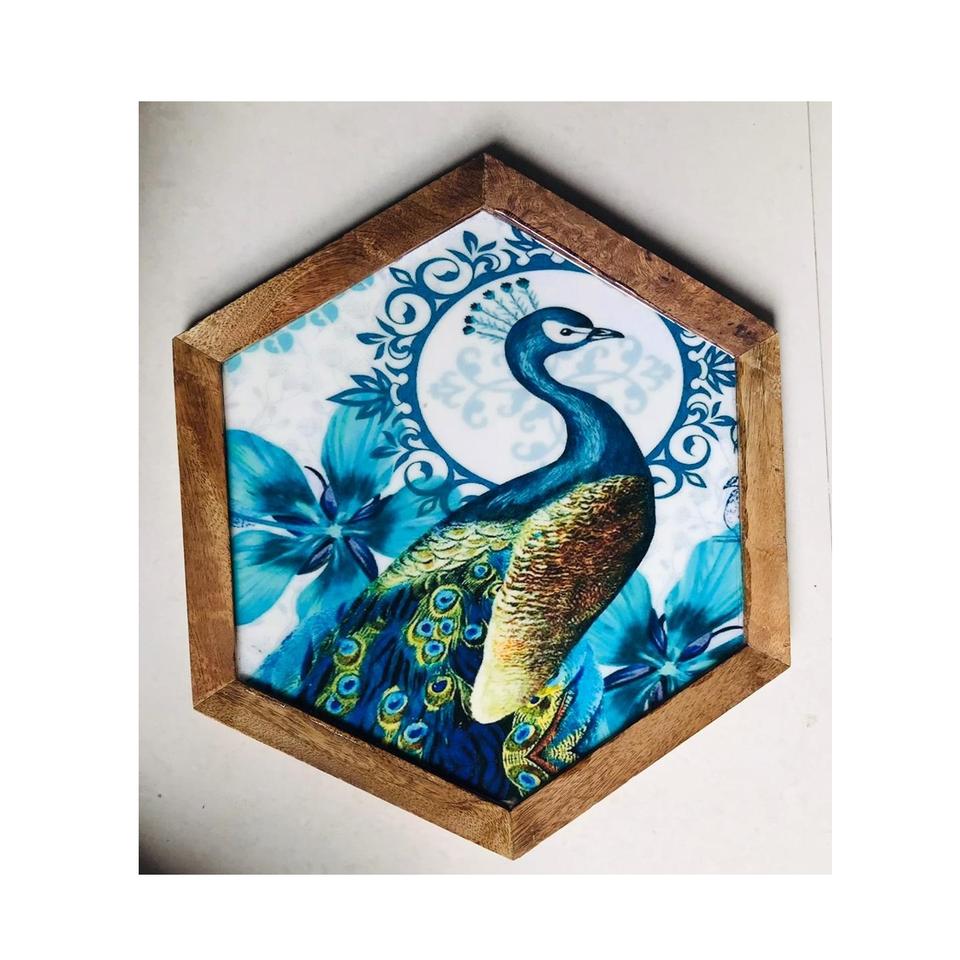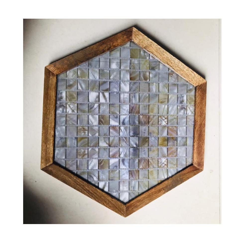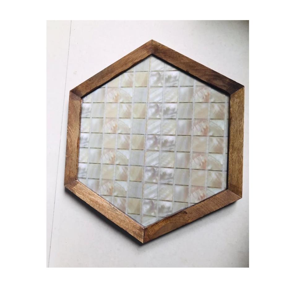 ถาดไม้ธรรมชาติพร้อมมุกสำหรับวางโต๊ะไม้ถูทรงหกเหลี่ยม