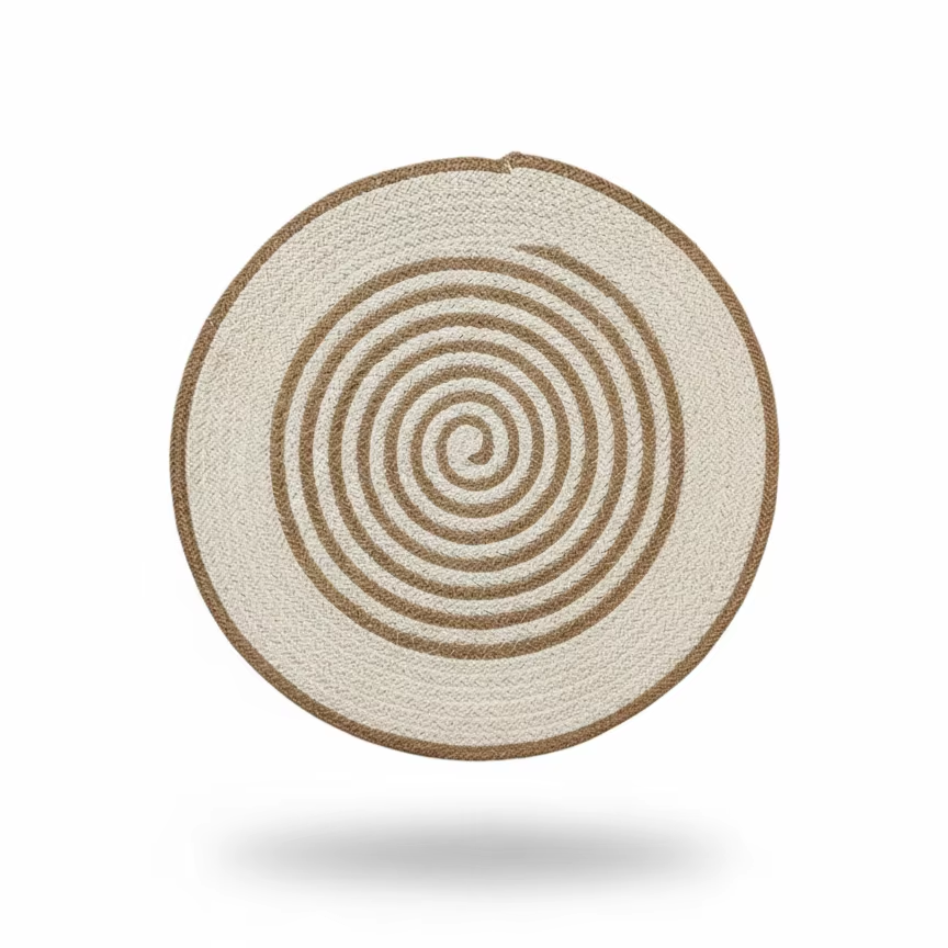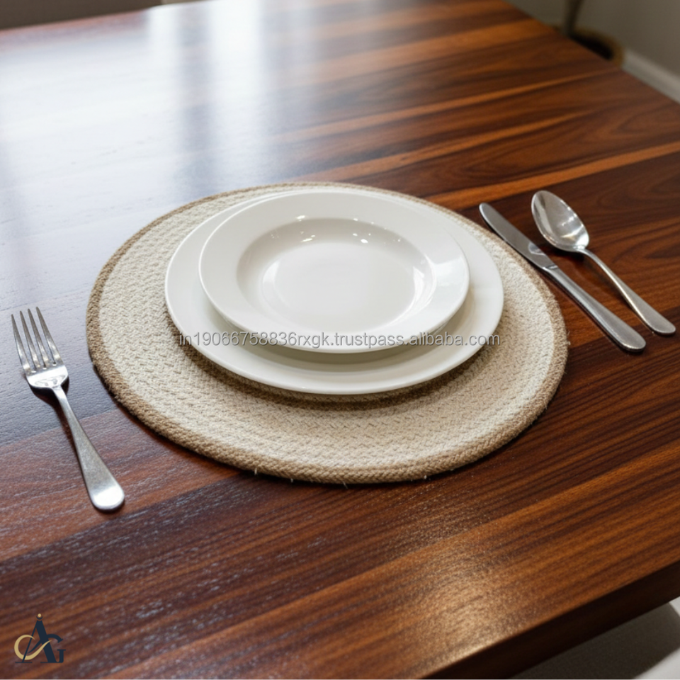 Natural Woven Jute Cotton Blend 14 Inch Round Placemat Handmade Indian Craft Contemporary Table Decor Eco Dining Mat AG Elements
