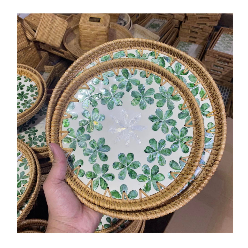 ถาดเสิร์ฟหวายสานธรรมชาติ ประดับมุก งานฝีมือ ตกแต่งบ้าน
