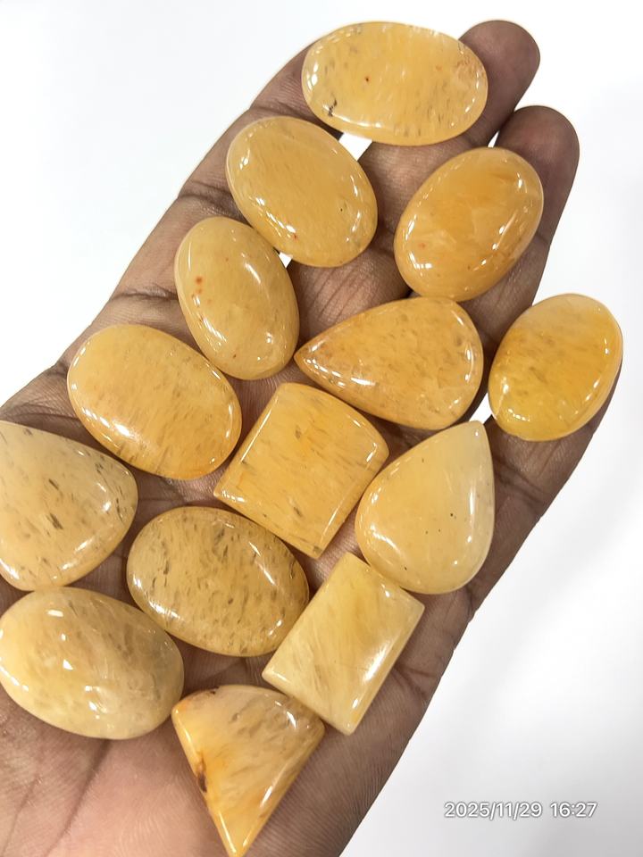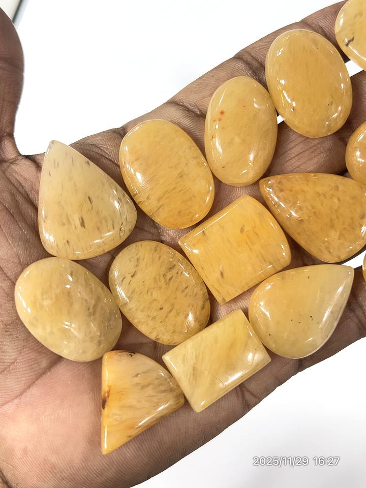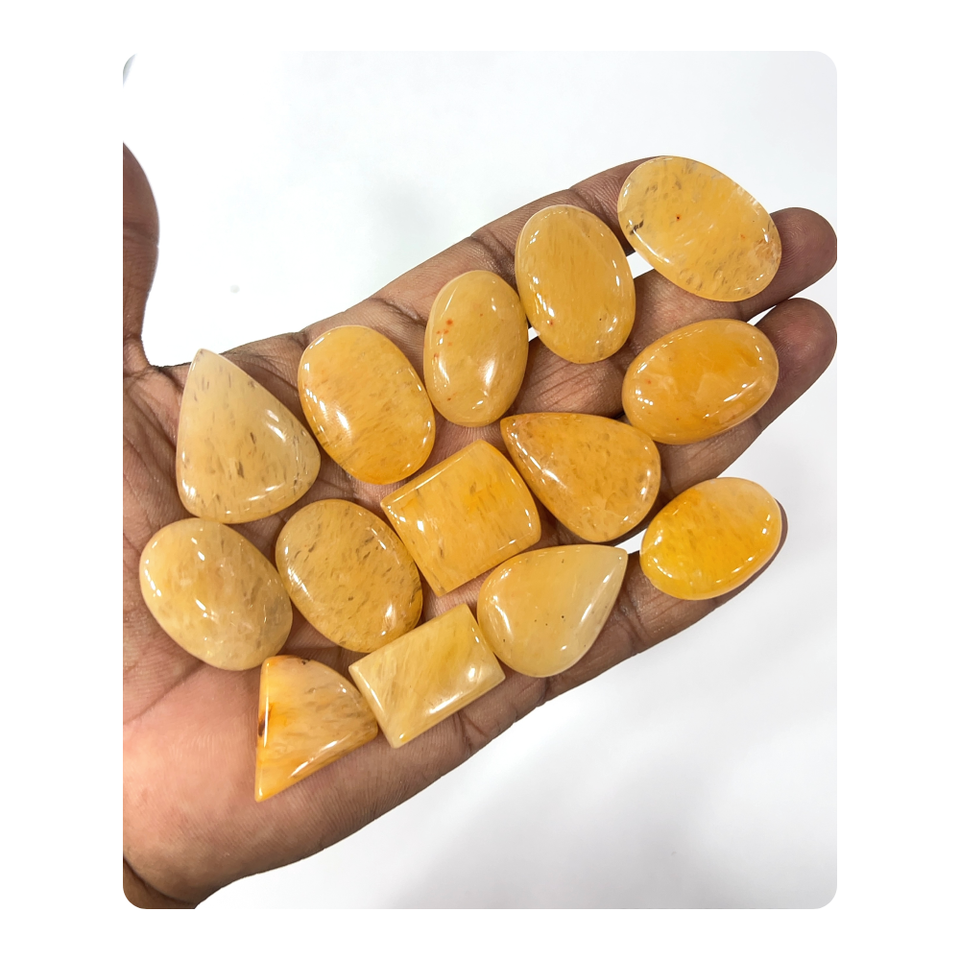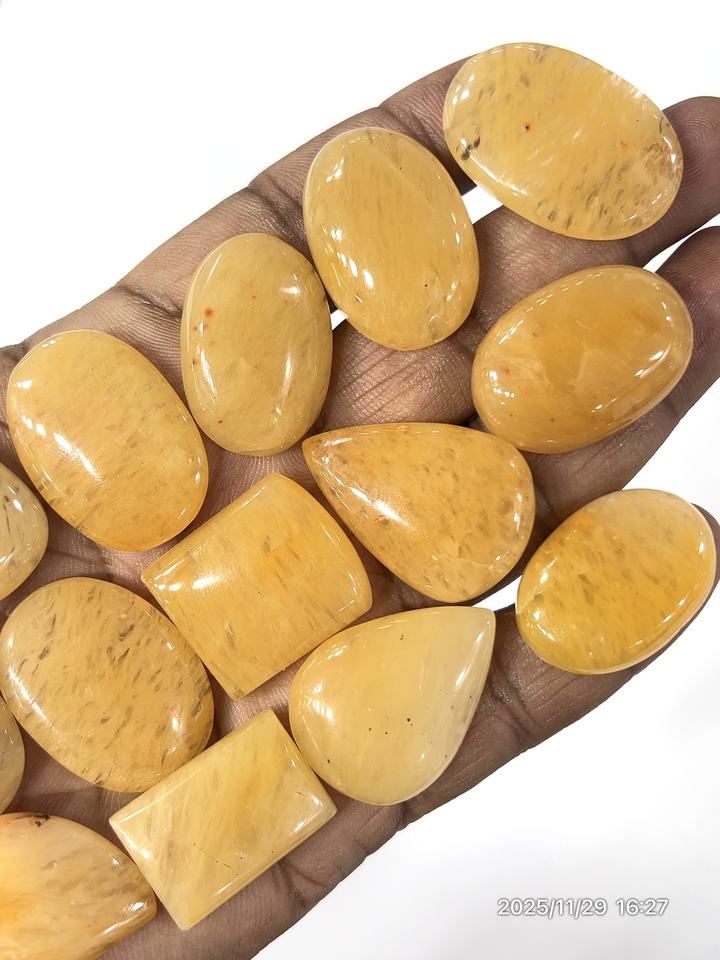 พลอยอะเวนเจอรีนสีเหลืองธรรมชาติ รูปทรงและขนาดคละแบบ ประมาณ 20 ถึง 30 มม.