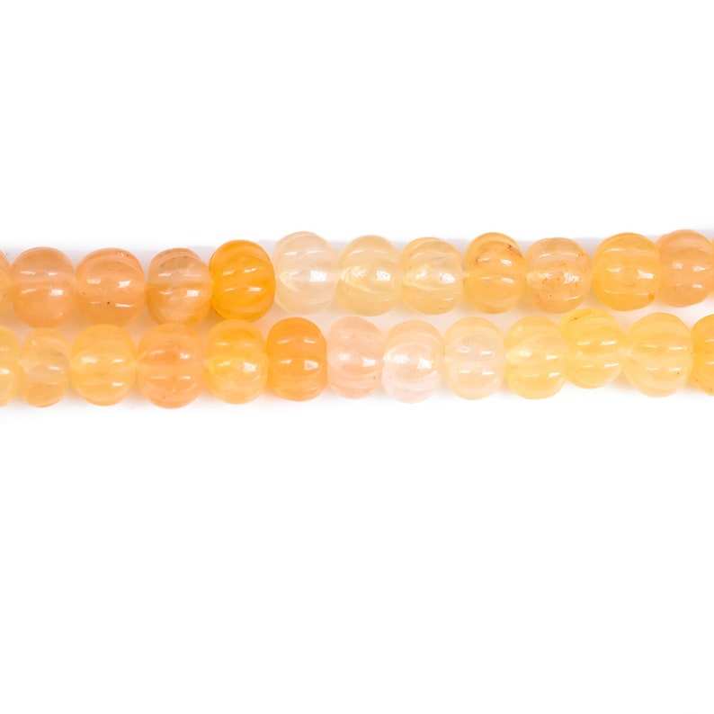 ลูกปัดหินอะเวนเจอรีนสีเหลืองธรรมชาติรูปเมล่อนแกะสลักทรงรอนเดลสำหรับทำเครื่องประดับแบบร้อยเป็นเส้น