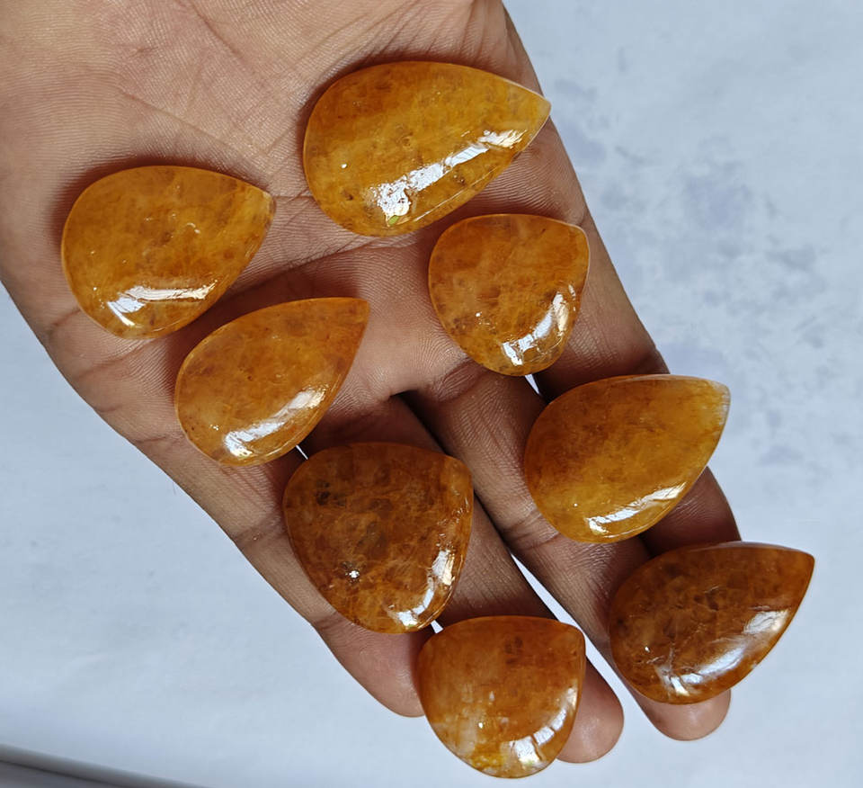 Natural Yellow Malachite Loose Stone 30-32mm Handmade Pear Shape Cabochon IGI Certified Brazilian for Jewelry Making