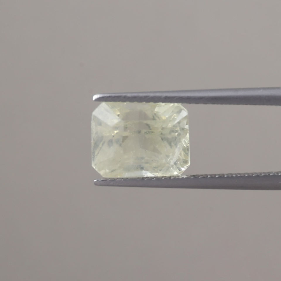 พลอยไพลินสีเหลืองน้ำเงินธรรมชาติทรงเหลี่ยมมรกต ขนาด 10x8 มม. น้ำหนัก 6.48 กะรัต ผ่านการรับรอง IGI เกรด AAA แบบเคลือบแว็กซ์/น้ำมัน สำหรับทำเครื่องประดับ
