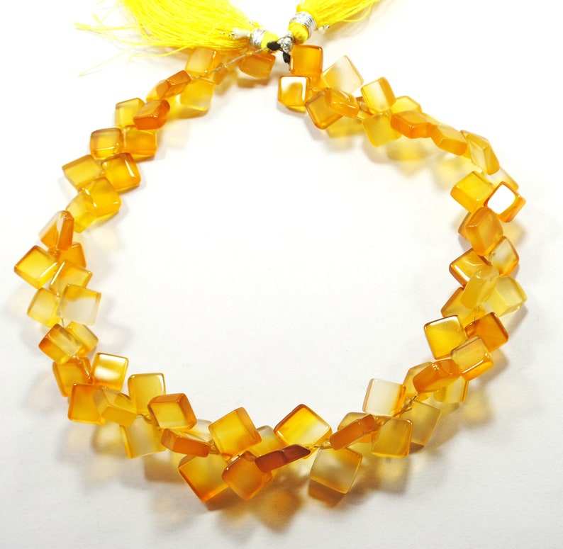 ลูกปัดหินแคลเซโดนีสีเหลืองธรรมชาติทรงสี่เหลี่ยมเรียบ สำหรับทำเครื่องประดับ ขายส่ง