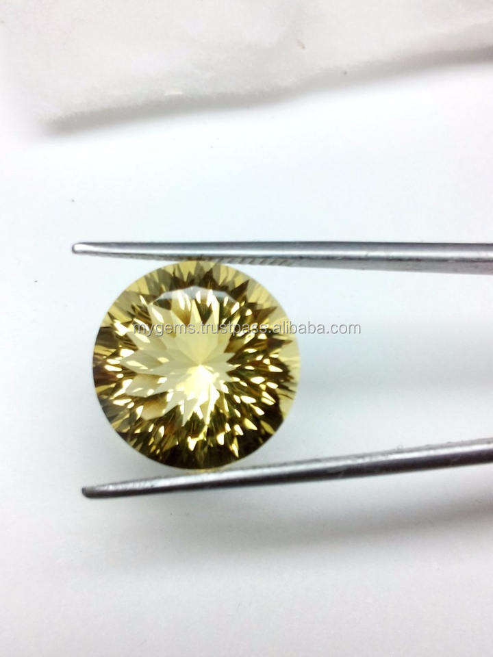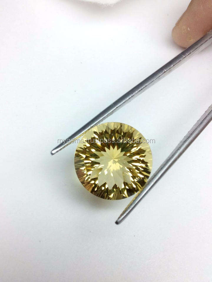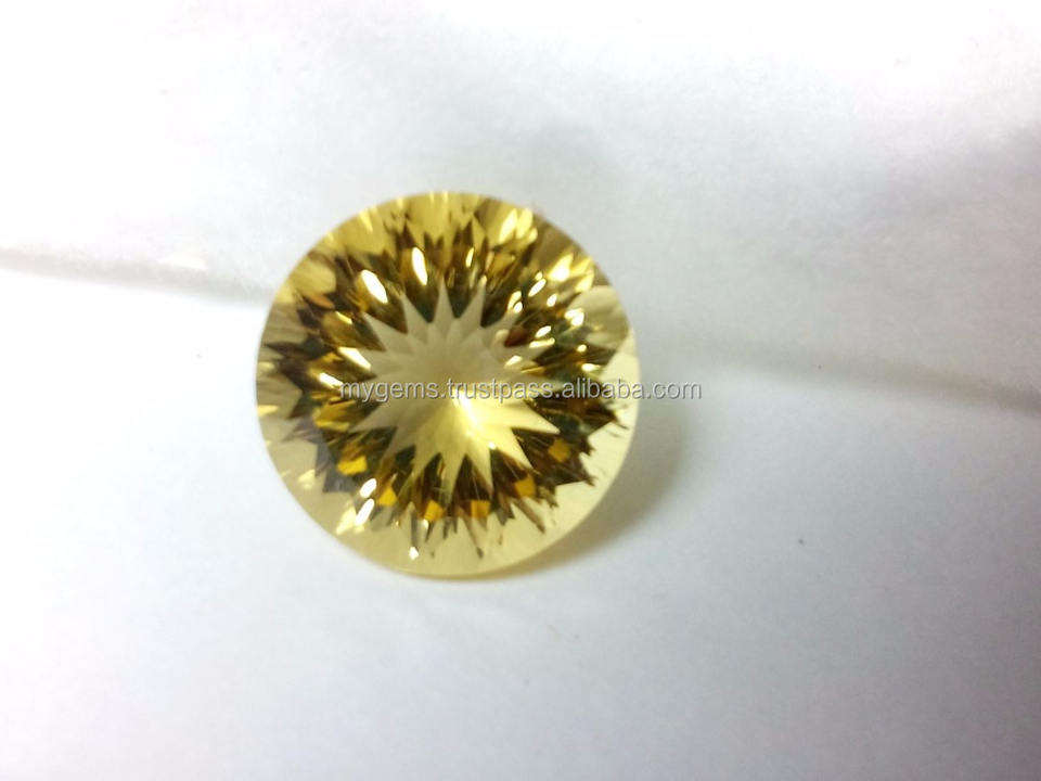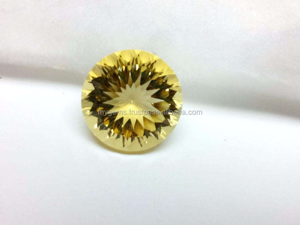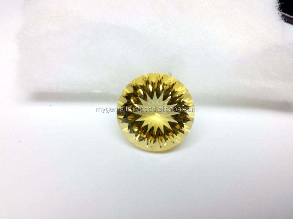 ซิทรินสีเหลืองธรรมชาติ ซิร์คอนควอตซ์ ขนาด 15 มม. รูปทรงกลม ตัดแบบเว้าสองขั้น ผ่านการอบด้วยความร้อน พลอยเม็ดเดี่ยว มีการเปลี่ยนสี