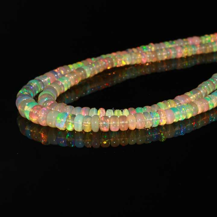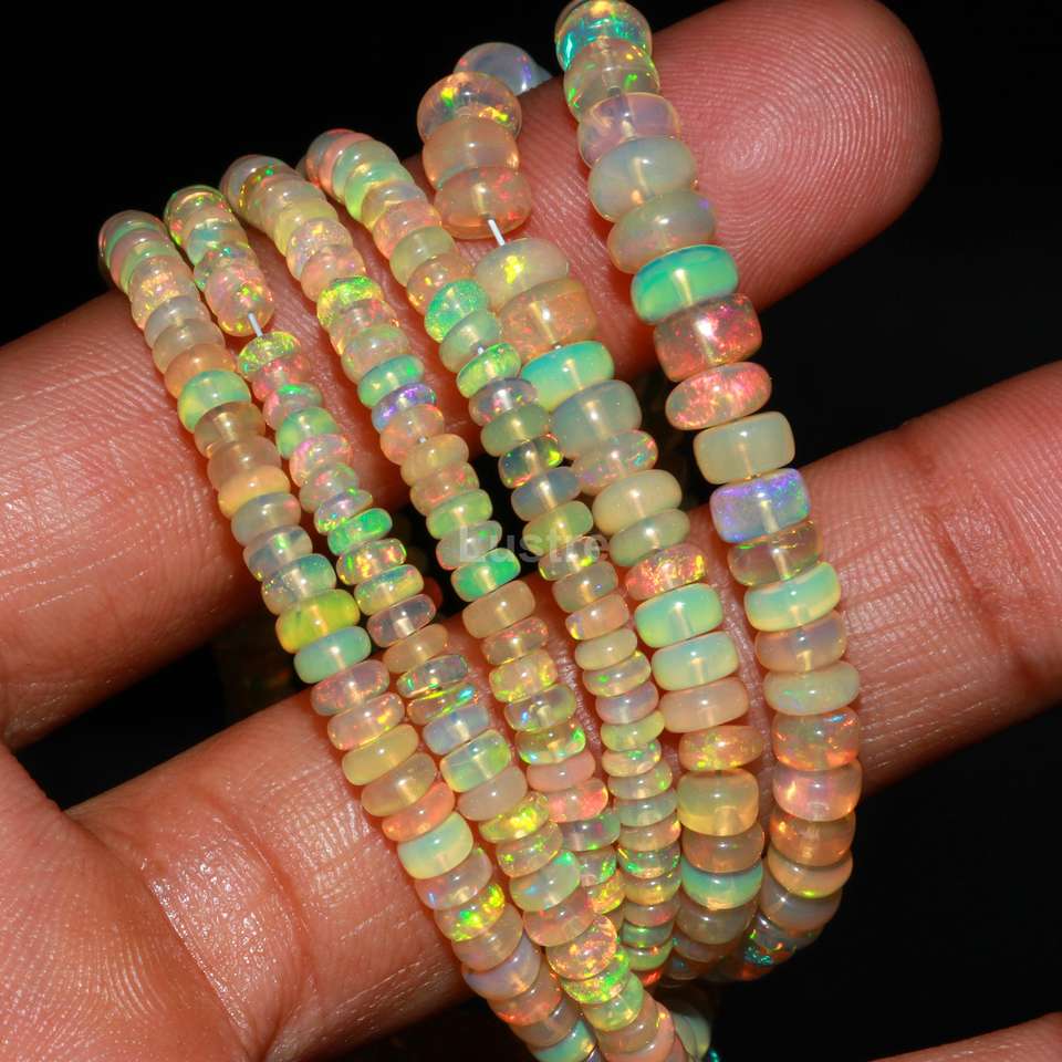 ลูกปัดโอปอลสีทองเอธิโอเปียสีเหลืองธรรมชาติ3-5.5มม. สำหรับทำเครื่องประดับมันเงาขนาด16 "35กะรัต