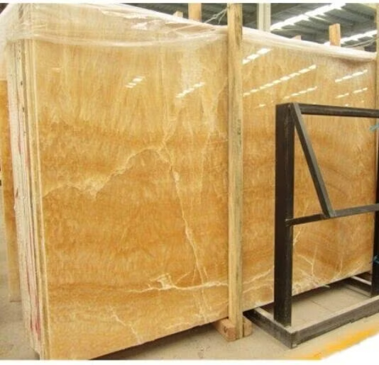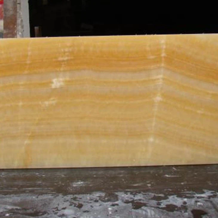 แผ่นหินโอนิกซ์สีเหลืองธรรมชาติแผ่นพื้นหลังเรืองแสงสำหรับตกแต่งภายในเคาน์เตอร์เกาะอ่างล้างจาน