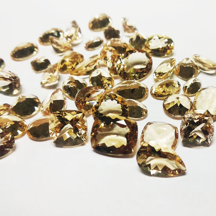 มอร์แกไนต์สีเหลืองธรรมชาติ รูปทรงผสม ตัดเหลี่ยม คุณภาพ 3A หินมรกตธรรมชาติ