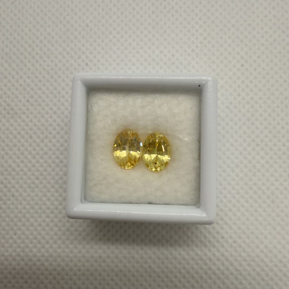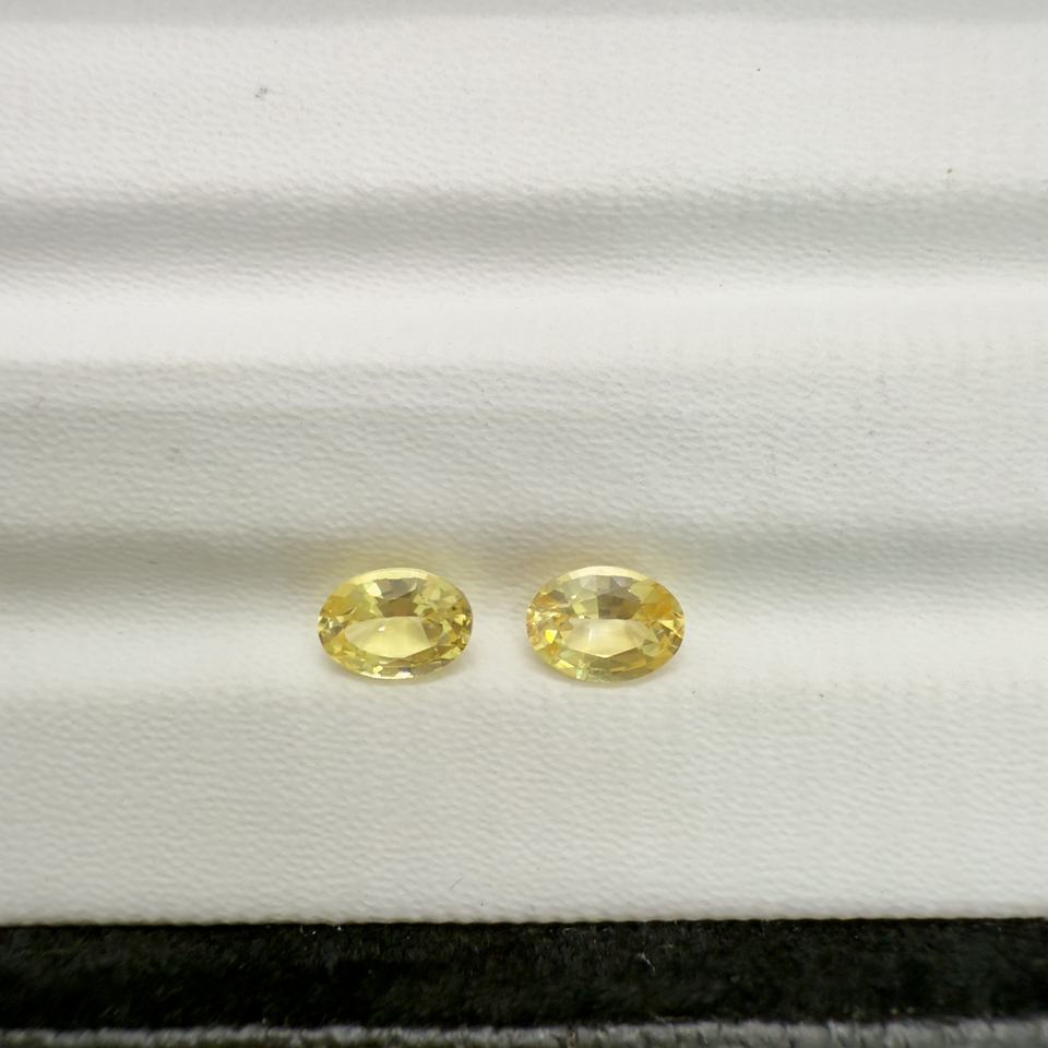 พลอยแซฟไฟร์พลอยสีเหลืองธรรมชาติทรงรีที่สวยงามสีเหลืองสวยงามและคู่แซฟไฟร์เจียระไนโดยใช้ความร้อน
