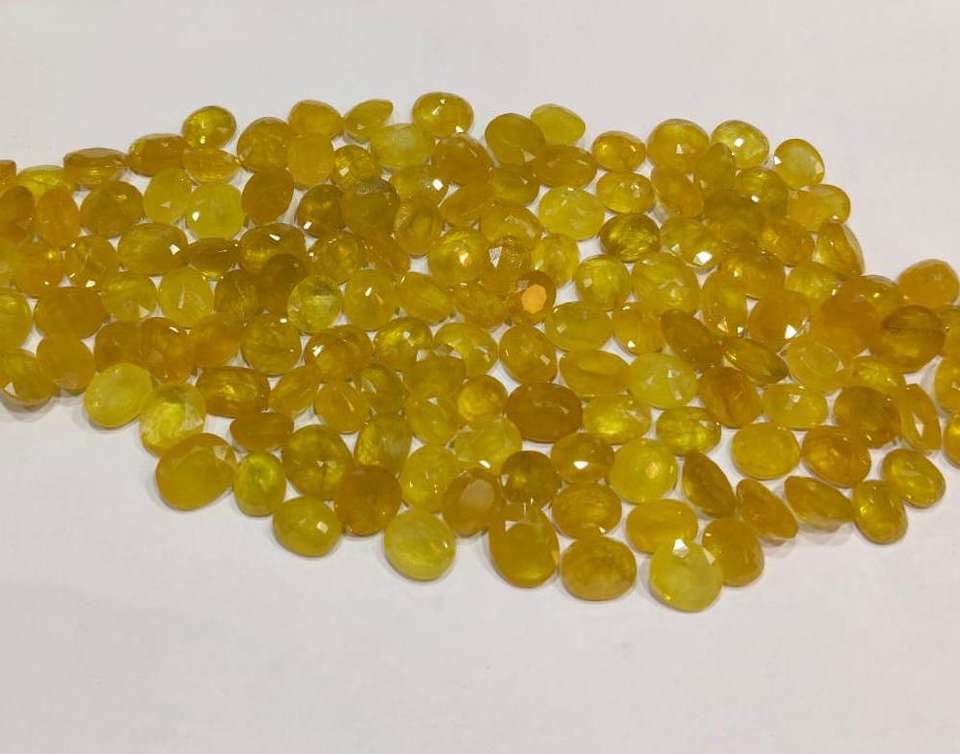 พลอยแซฟไฟร์สีเหลืองธรรมชาติทรงรีจากไนจีเรีย สำหรับทำแหวนหรือจี้ (ใช้ในโหราศาสตร์)