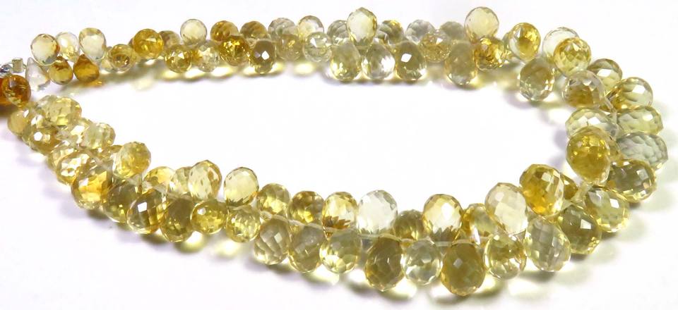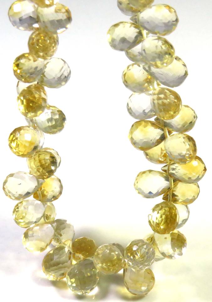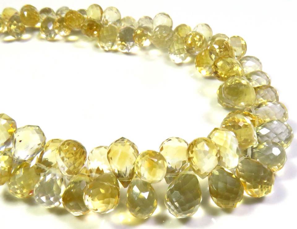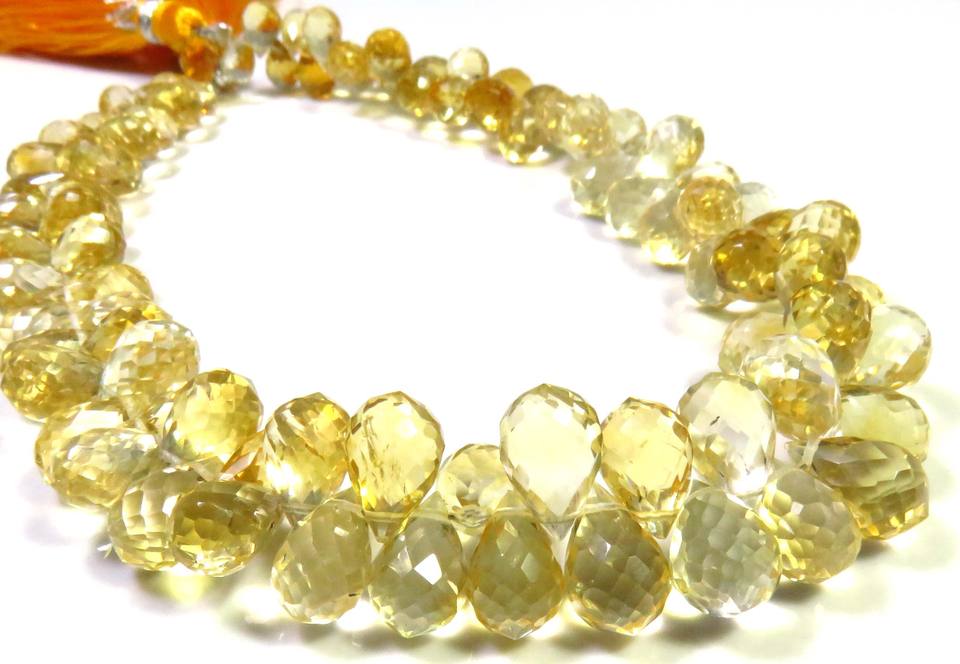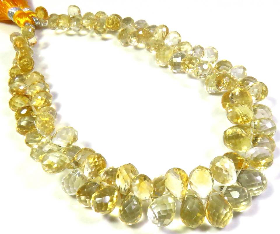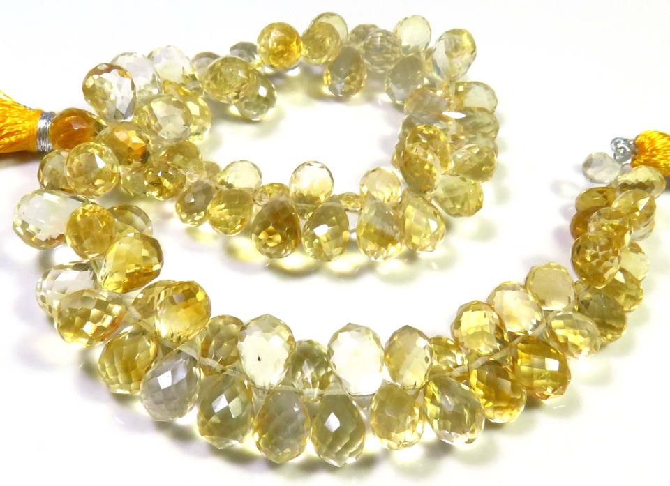 ลูกปัด Briolette ทรงหยดน้ำตา6.5-10มม. สีเหลืองมะนาวธรรมชาติ9 "สายอัญมณีหลวมเล่นสีชั้นยอด