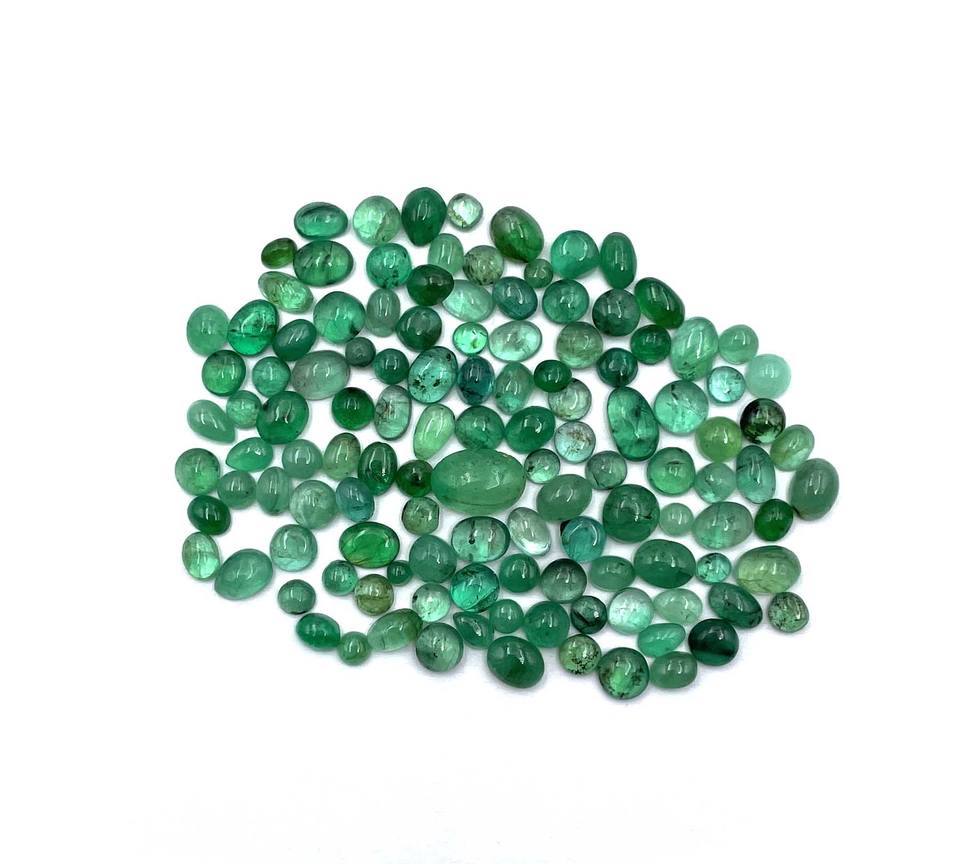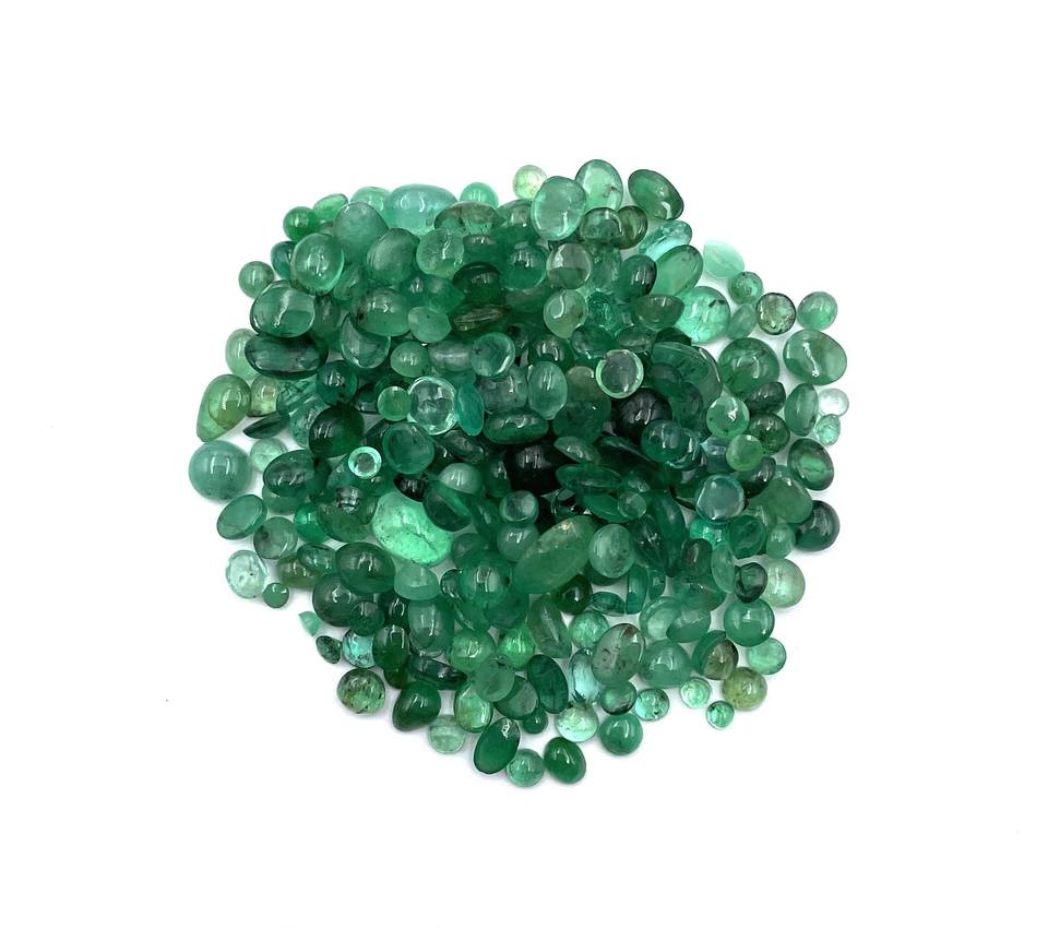 พลอยมรกตธรรมชาติจากแซมเบีย รูปทรงผสมแบบคาโบชอง ขนาด 3*4-4*6 มม. น้ำหนัก 10 กะรัต สำหรับทำเครื่องประดับ