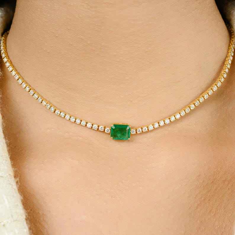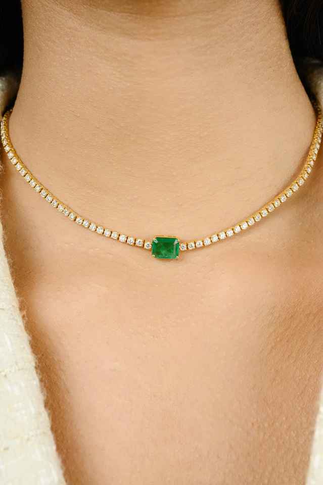 สร้อยคอเทนนิสเพชร zambian ธรรมชาติมรกต14K เครื่องประดับทองได้รับการรับรองสำหรับงานแต่งงานสร้อยคอโชคเกอร์ราคาแพงปัจจุบัน
