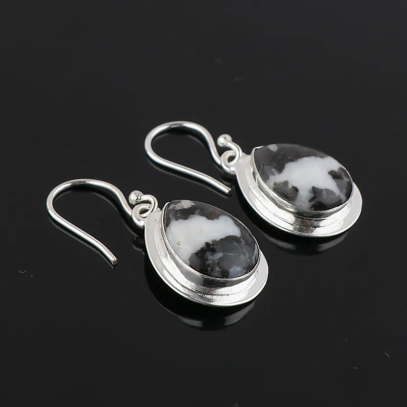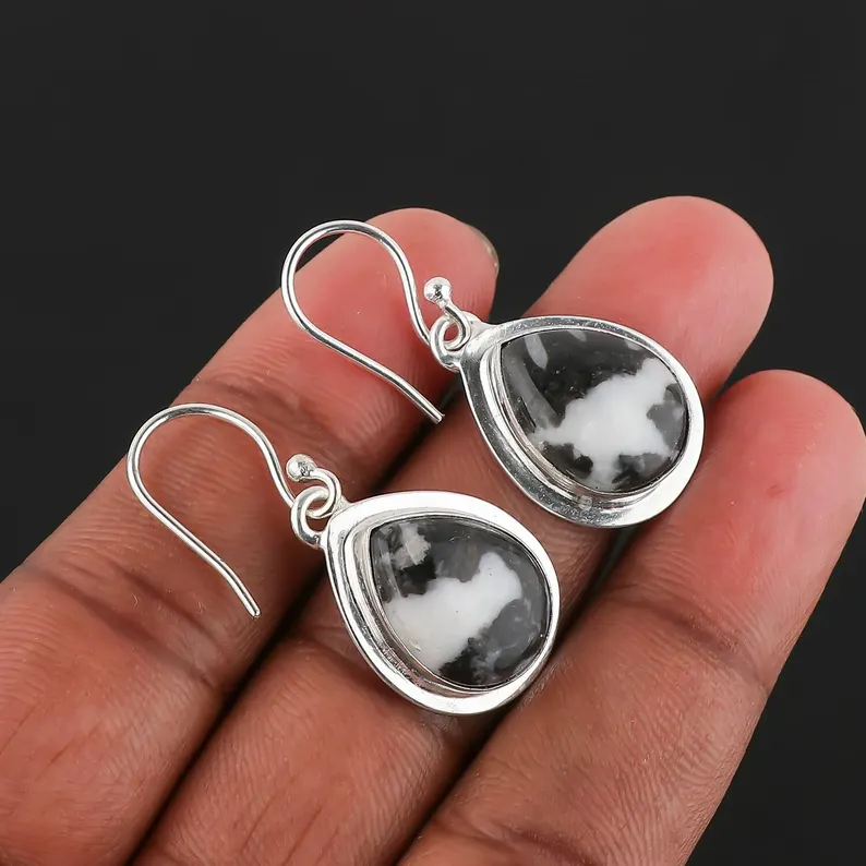 ต่างหูแบบห่วงเงินสเตอริงแบบเรียบง่ายทำด้วยมือต่างหูกำไลข้อมือแจสเปอร์ลายม้าลายธรรมชาติของขวัญสไตล์คลาสสิกสำหรับเธอ