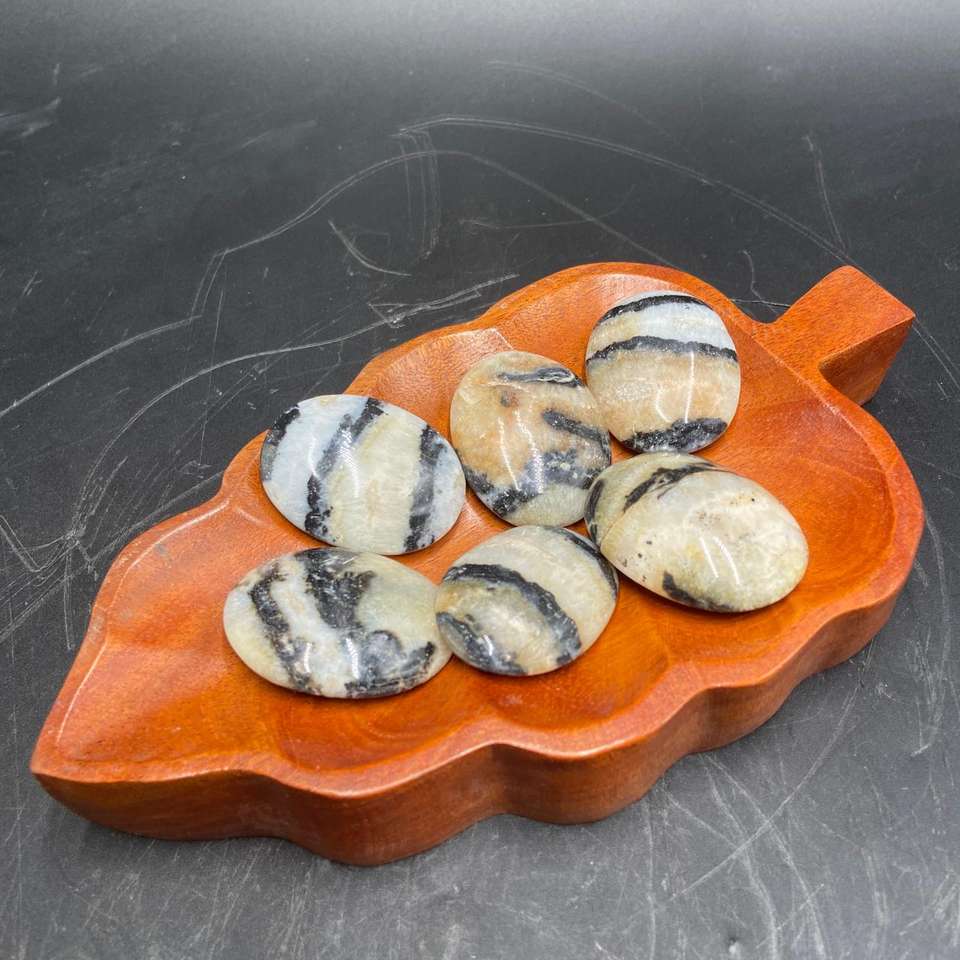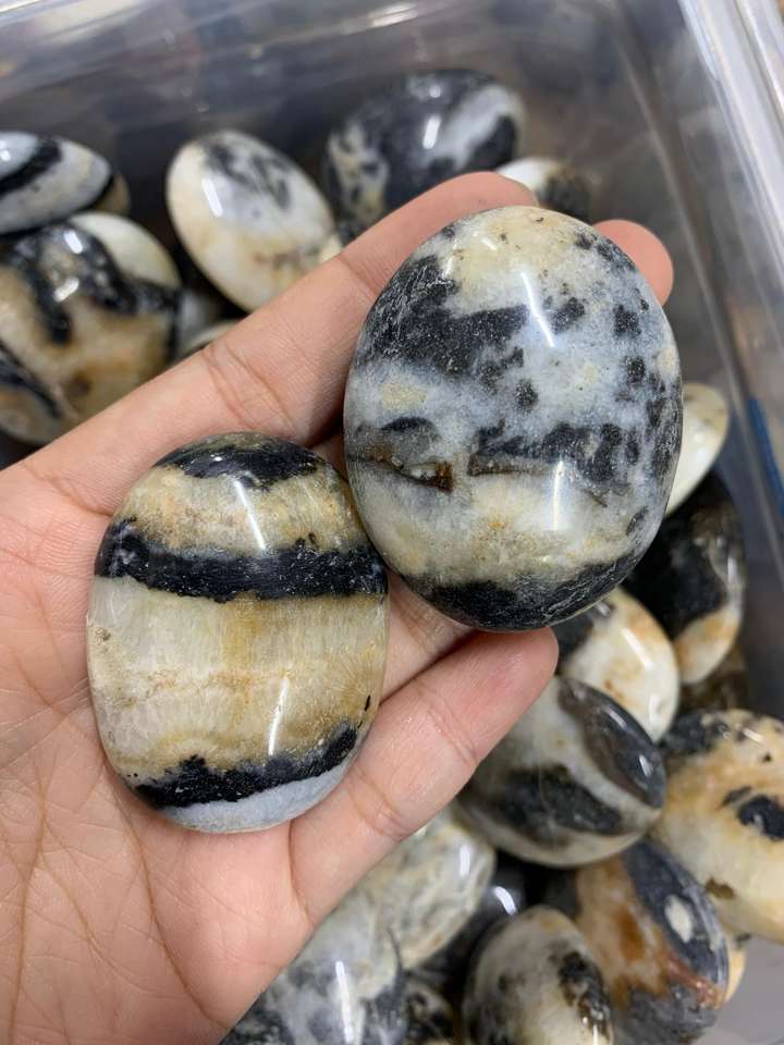 หินปาล์มแจสเปอร์ลายม้าลายธรรมชาติ ขัดเงา สำหรับบำบัดรักษา พร้อมลวดลายสีดำและสีขาว ขนาด 35 x 45 x 15 ซม.