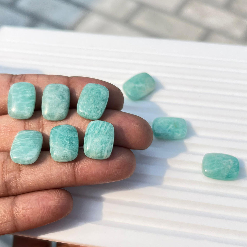 พลอยอเมซอนธรรมชาติอัญมณีรูปแปดเหลี่ยม10X14มม. หินขัดผิวเรียบสำหรับทำเครื่องประดับ