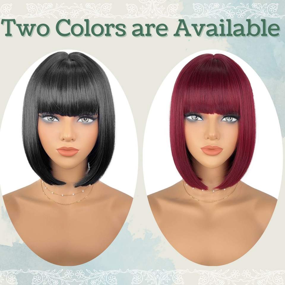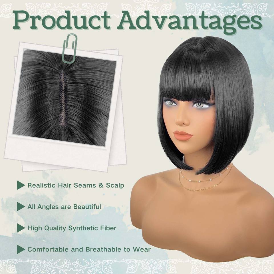 วิกผมสั้นสีดำธรรมชาติและสังเคราะห์สำหรับผู้หญิงมีผมม้าทนความร้อนสำหรับงานปาร์ตี้เทศกาลดนตรีงานปาร์ตี้