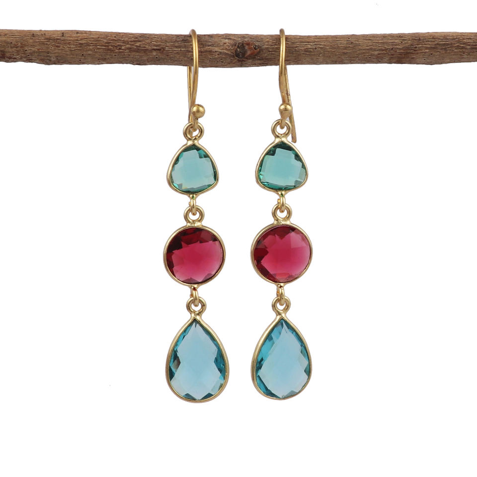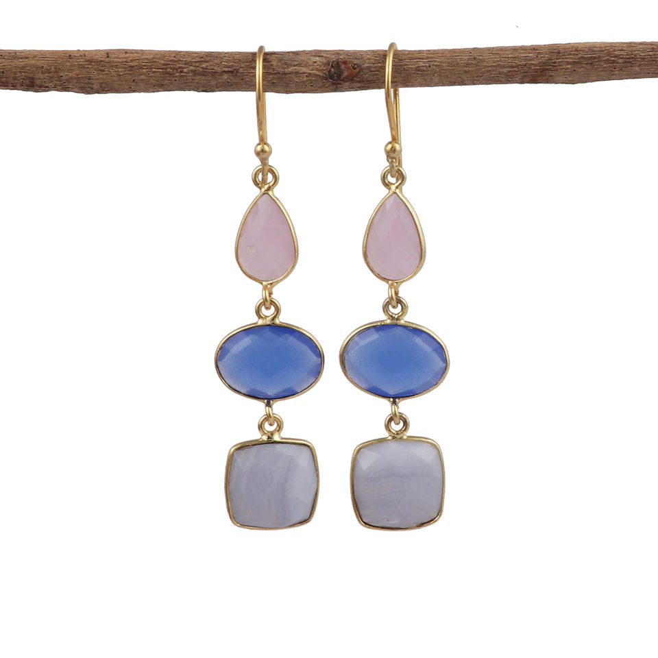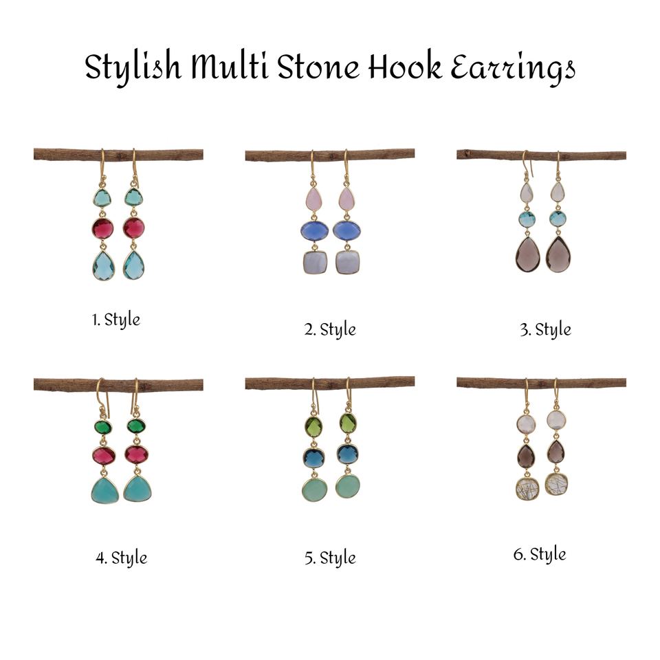 แฟชั่นล่าสุดต่างหูห้อยอัญมณีควอตซ์เคลือบทองทองเหลือง apatite ห่วงแฟชั่นทันสมัยทำด้วยมือสไตล์ฮิปฮอป