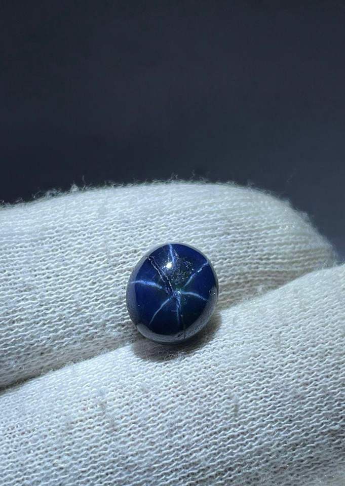 ไพลินสีน้ำเงินธรรมชาติทรงคาโบชอง รูปดาว 6 แฉก