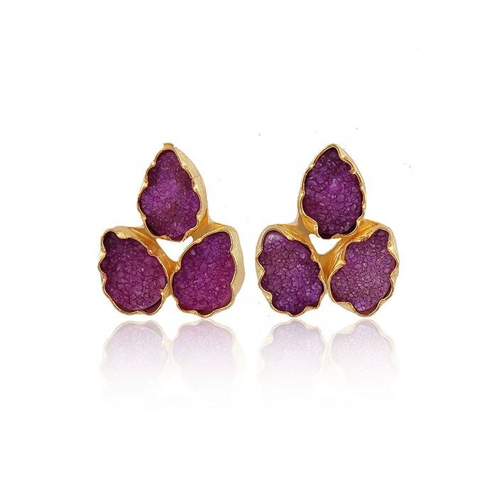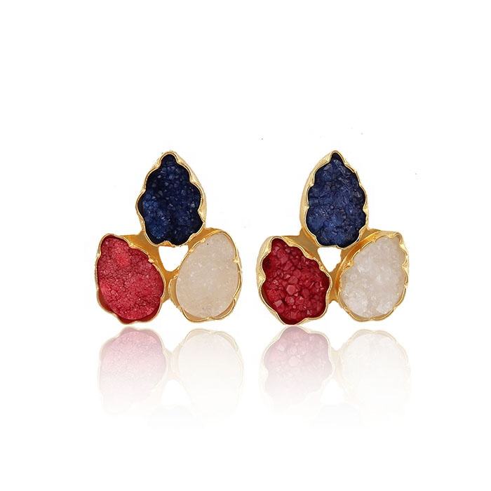 Natural blue sugar agate druzy gemstone stud earrings red druzy gemstone jewelry multi druzy fashion earrings jewelry gifts