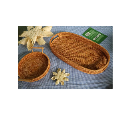 ถาดหวายสีธรรมชาติพร้อมราคาที่แข่งขันได้ในตลาดสำหรับเก็บผลไม้/หวายทรงกลมทำจากเวียดนาม
