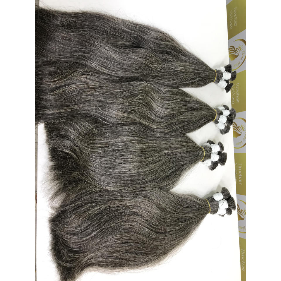 ผมต่อแบบชาวเวียดนามผมสีเทาธรรมชาติสำหรับการฟอกสีผมที่มีส่วนต่อของมนุษย์ผมยาวที่สุดในยุโรปมีความยาว100%