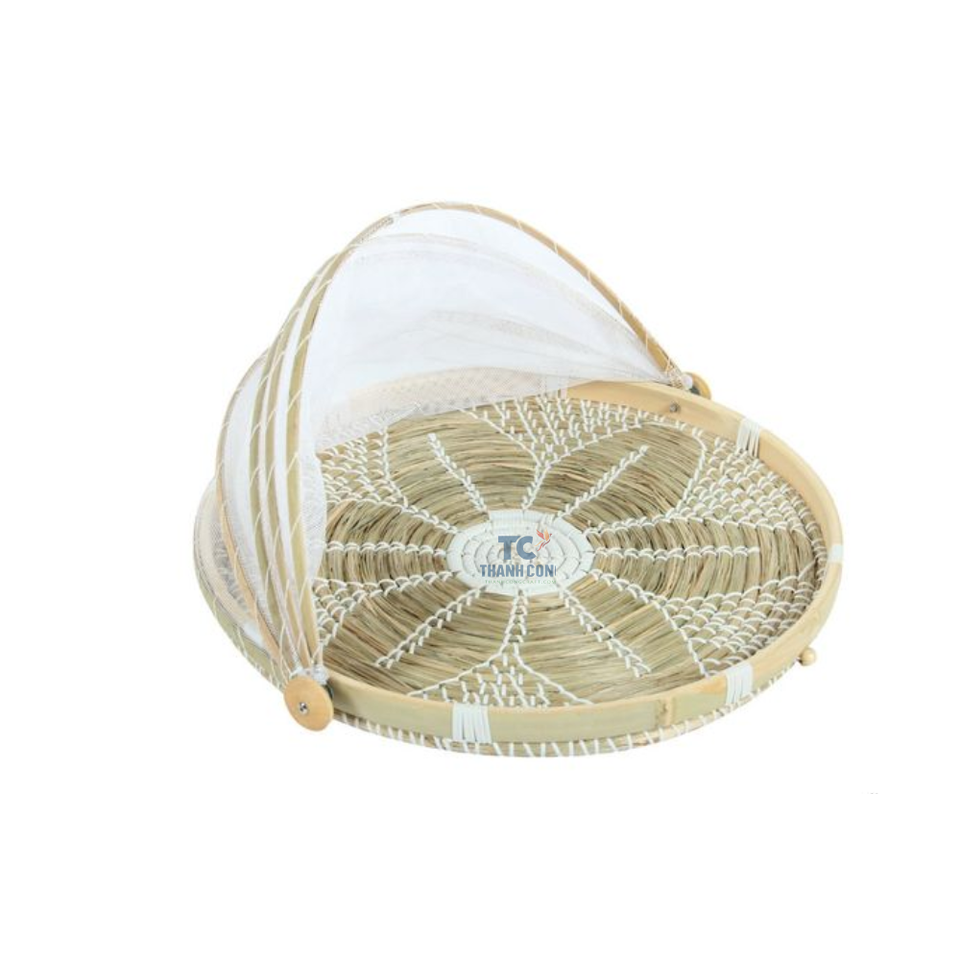 ถาดไม้ไผ่หญ้าทะเลทำด้วยมือธรรมชาติพร้อมฝาครอบอาหารที่ดีฝาครอบป้องกันอาหารจากไม้ไผ่