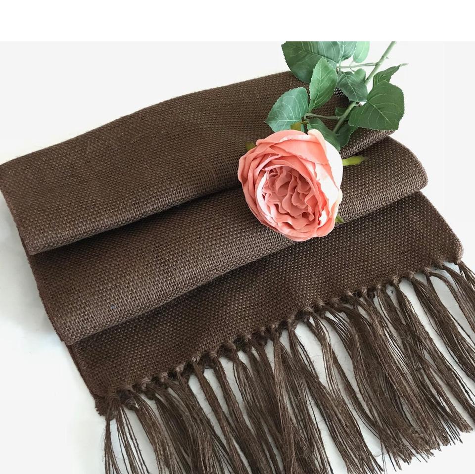 ปอกระเจาธรรมชาติสีแบบกำหนดเองและผ้าปูโต๊ะผ้าฝ้ายแบบเรียบง่ายวางกลางโต๊ะสำหรับงานแต่งงานและตกแต่งบ้านสำหรับโรงแรม