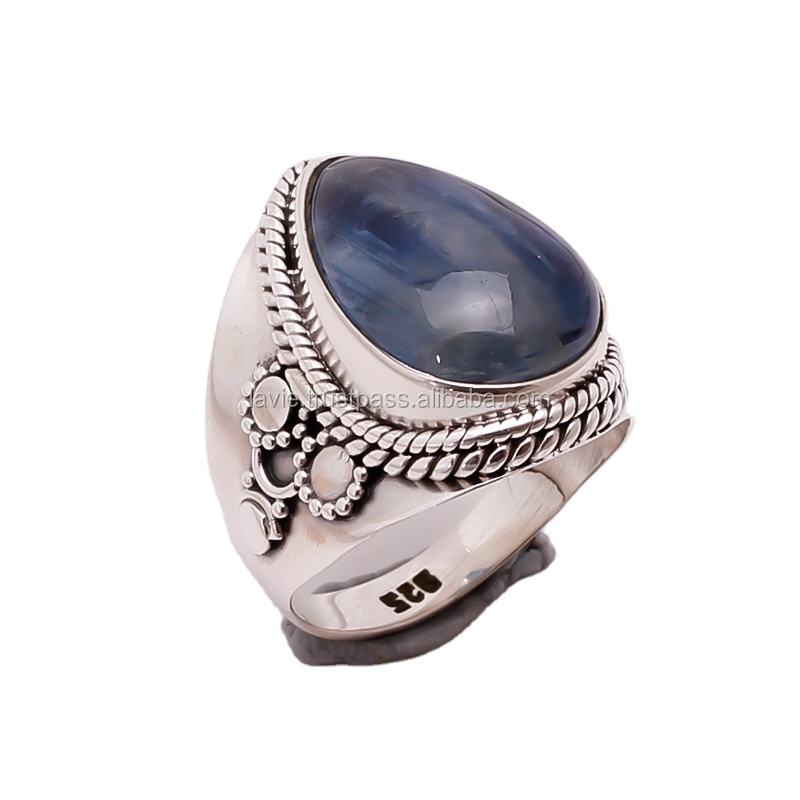 แหวนไคยาไนต์เงินคุณภาพดีทำด้วยมือเครื่องประดับอัญมณีงานแต่งงานสไตล์อินเดียคลาสสิกไคยาไนต์ธรรมชาติผลิตโดยแหล่งที่เชื่อถือได้