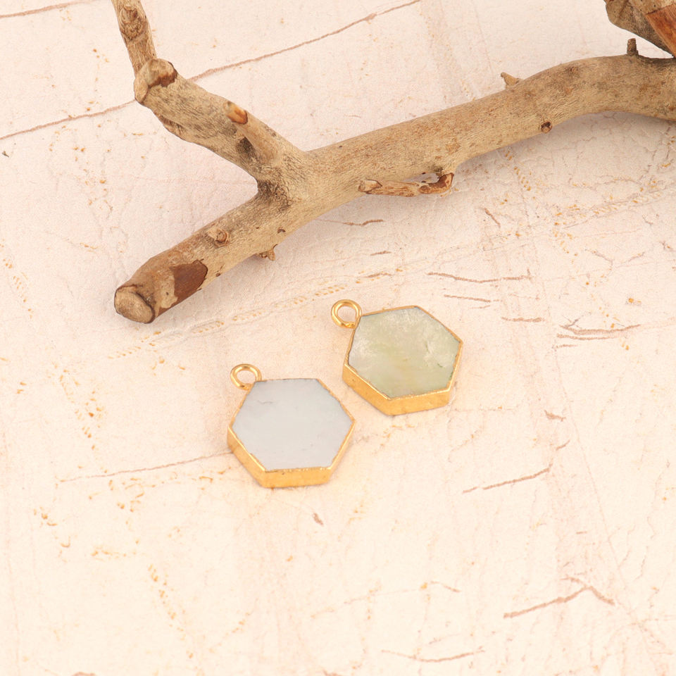 ตัวเชื่อมต่อทรงหกเหลี่ยมทำด้วยมือไข่มุกธรรมชาติพร้อมขอบทองเหลืองชุบด้วยไฟฟ้าสำหรับการทำเครื่องประดับ