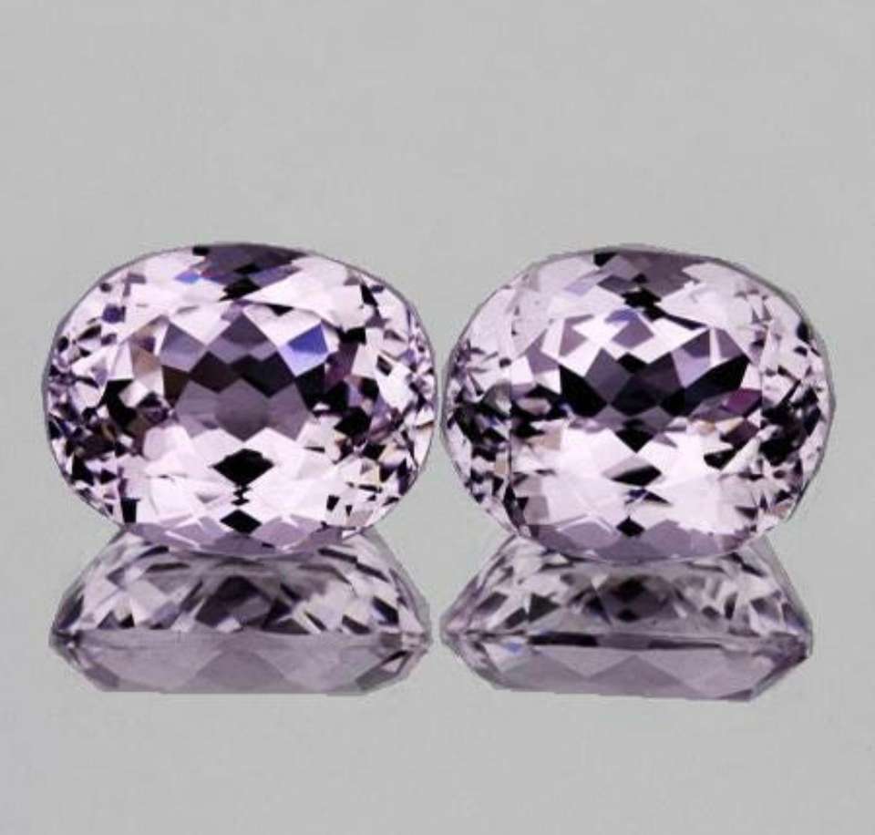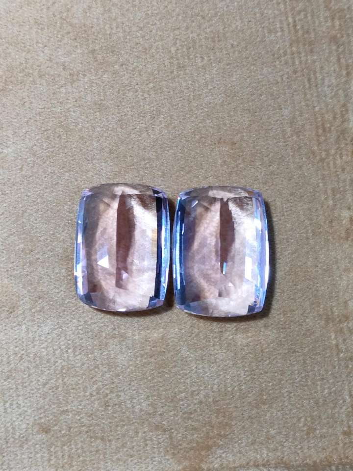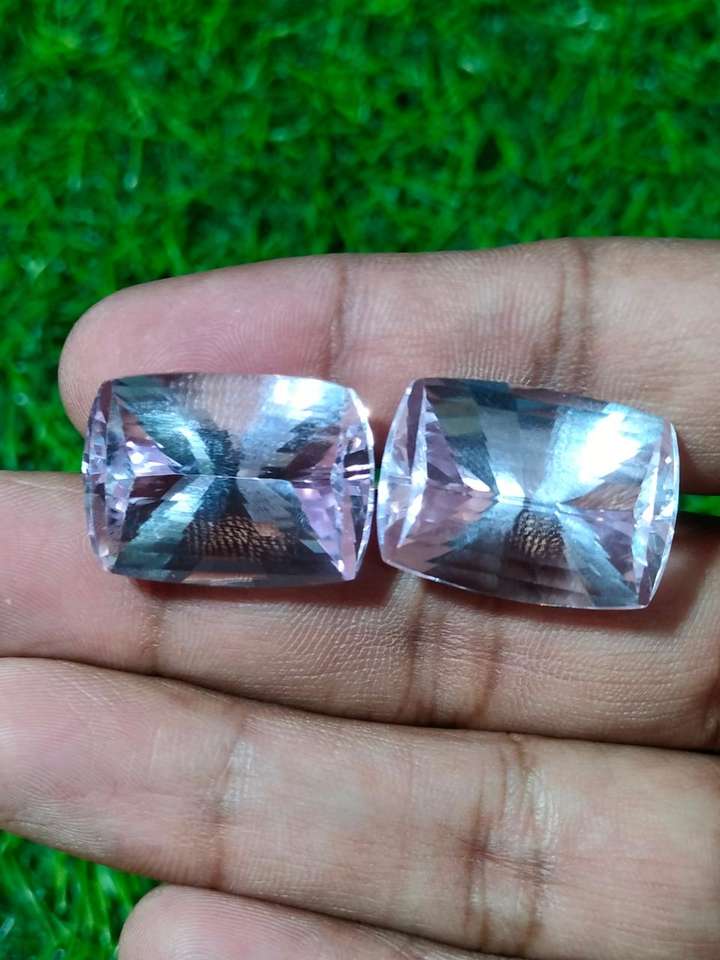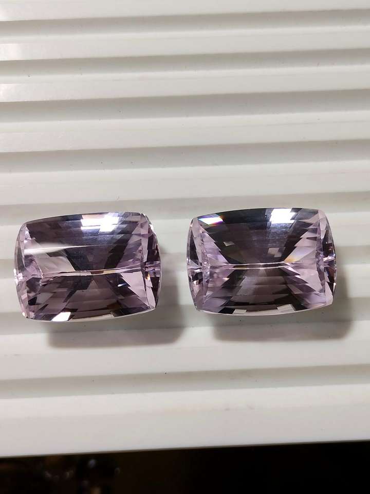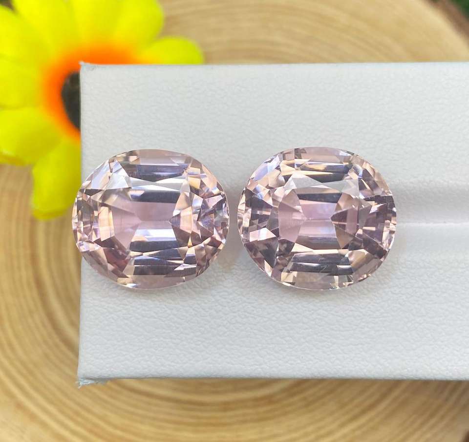 Kunzite สีชมพูธรรมชาติคู่รูปทรงเบาะเหลี่ยมเพชรพลอยที่สมบูรณ์แบบสำหรับการทำเครื่องประดับอัญมณีหายาก