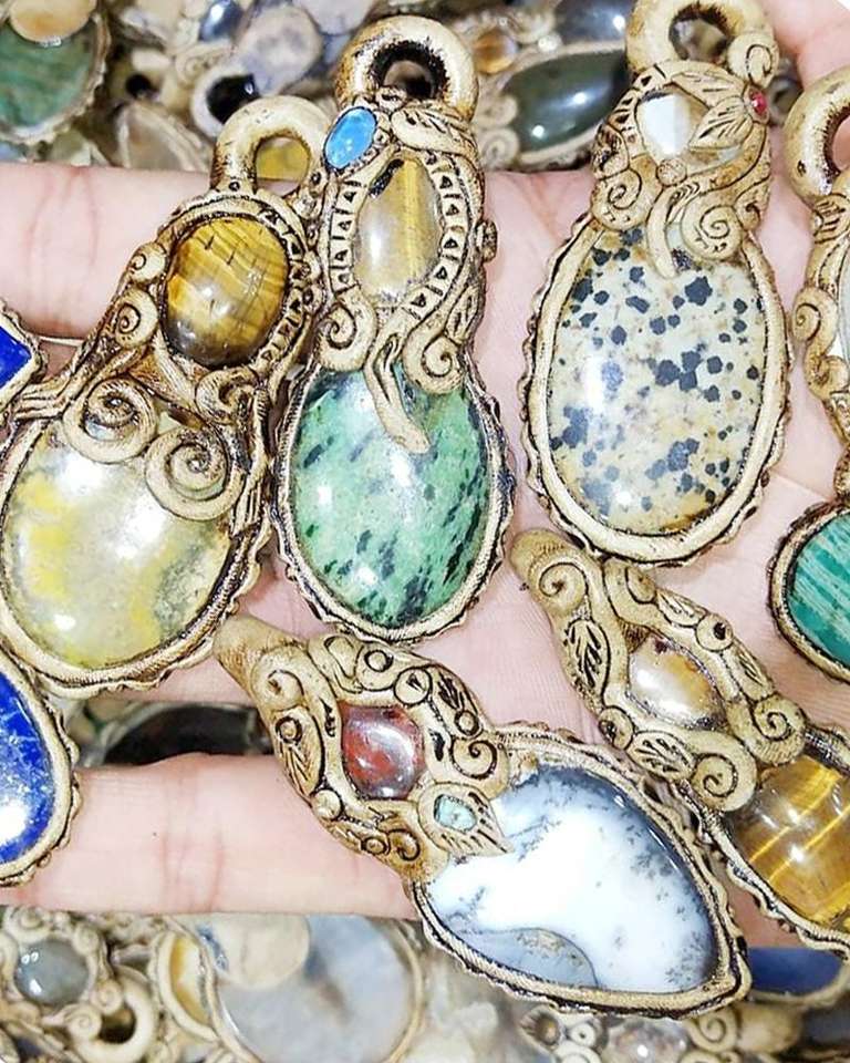 Natural Polymer Clay Pendant Gemstone Wholesale Mix Gemstone Pendant Handmade Clay Carved Gemstone Pendant Lot