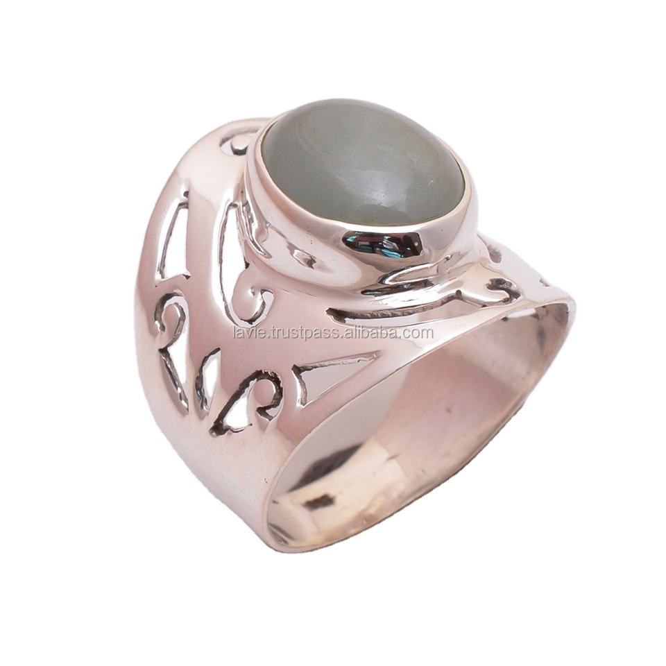 แหวนเงินแท้925 prehnite ธรรมชาติทำด้วยมือเครื่องประดับเงินชั้นดีสำหรับงานแต่งงานจากผู้ผลิตโดยตรง