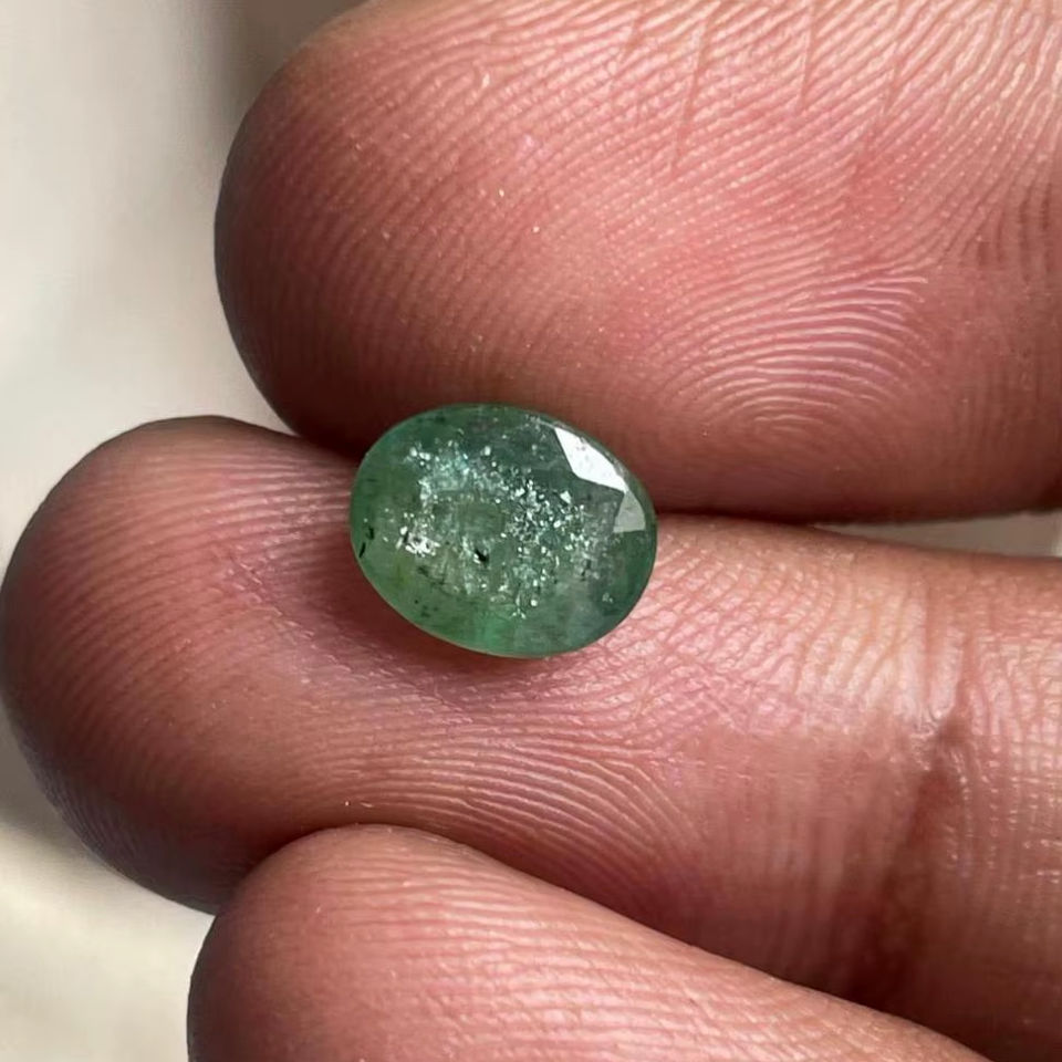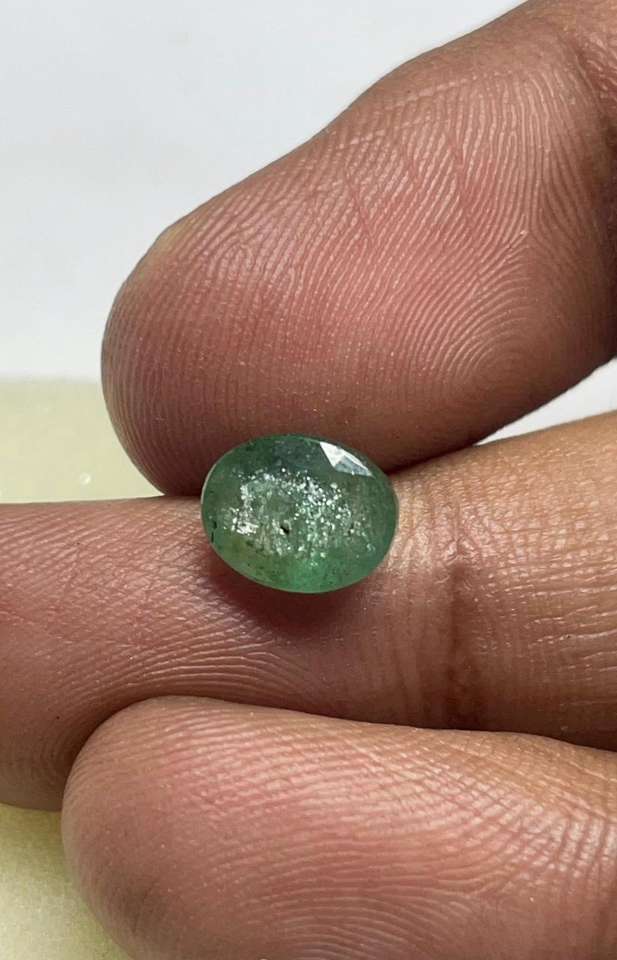 พลอยซันสโตนสีเขียวมรกตธรรมชาติทรงรี สำหรับทำเครื่องประดับ