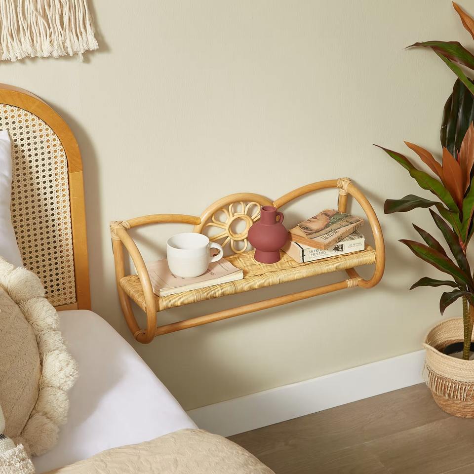 ชั้นเก็บของหวายธรรมชาติติดผนัง:ขนาด: L23,6 x W8,3 x H11นิ้ว