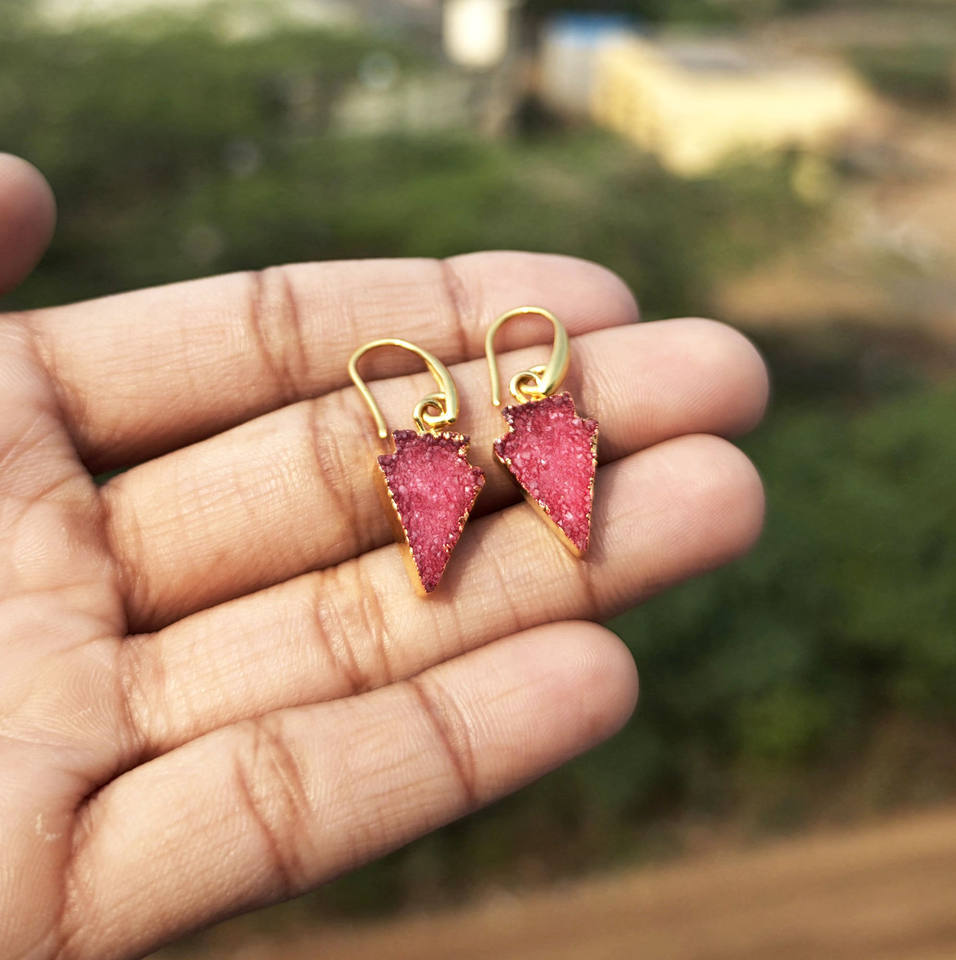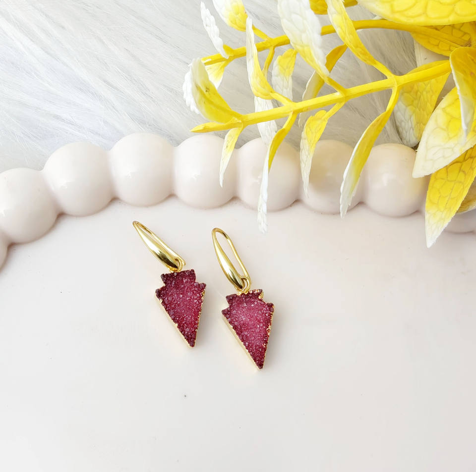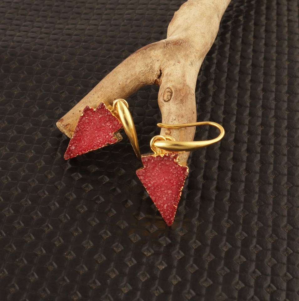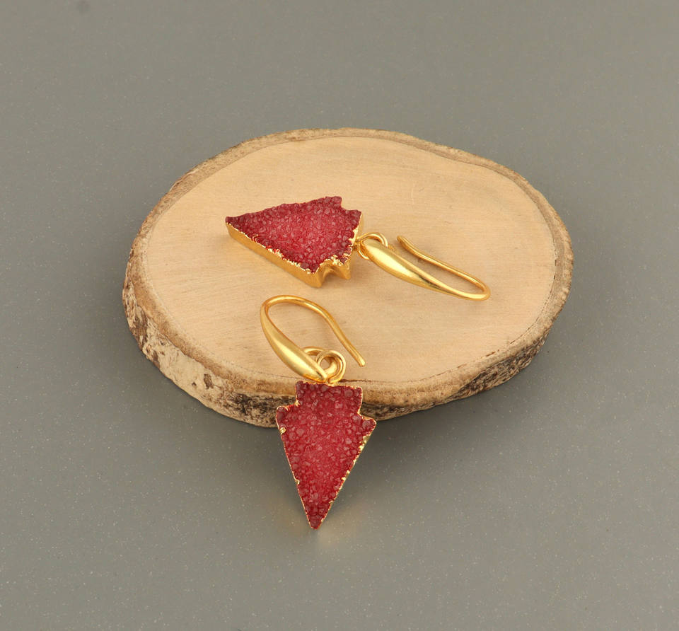 ต่างหูห้อยประดับด้วยหินอาเกตสีแดงธรรมชาติ ชุบทอง 18k รูปทรงหัวลูกศร ต่างหูแบบเกี่ยวห้อย งานจิวเวลรี่สั่งทำพิเศษสำหรับสาวๆ